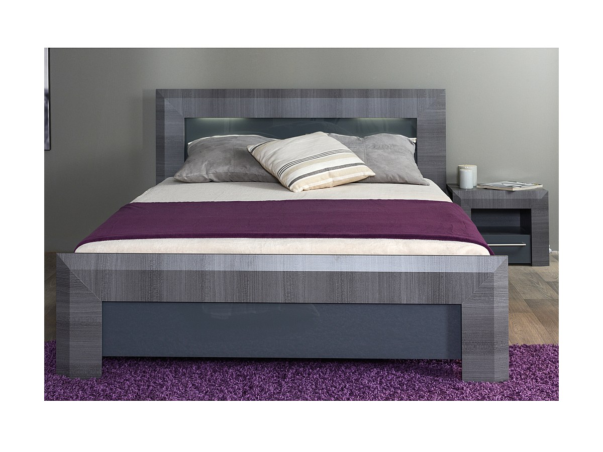 Letto matrimoniale alla francese con LED 140 x 190 cm in MDF finiture simil olmo grigio - BRITANY
