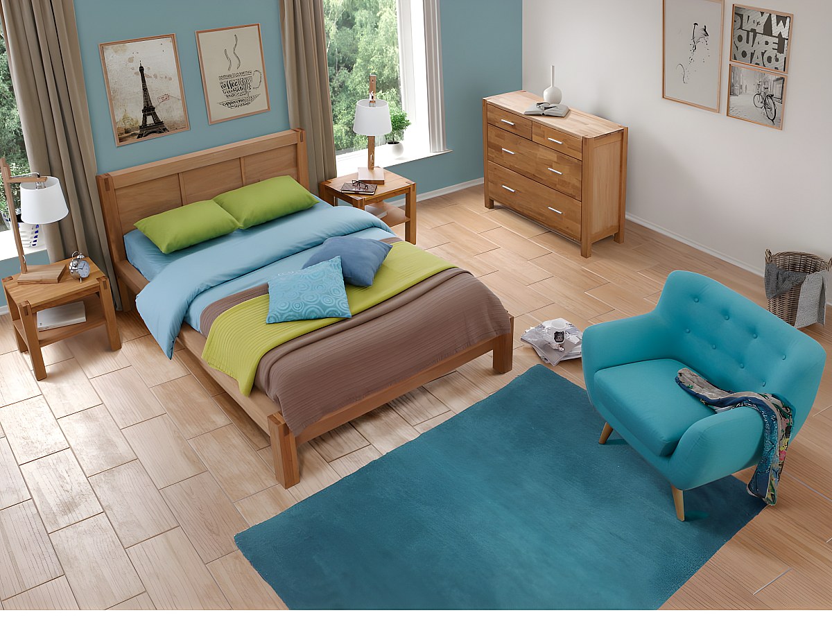 Letto matrimoniale alla francese 140 x 190 cm in Legno di quercia oliato - BROCELIANDE II