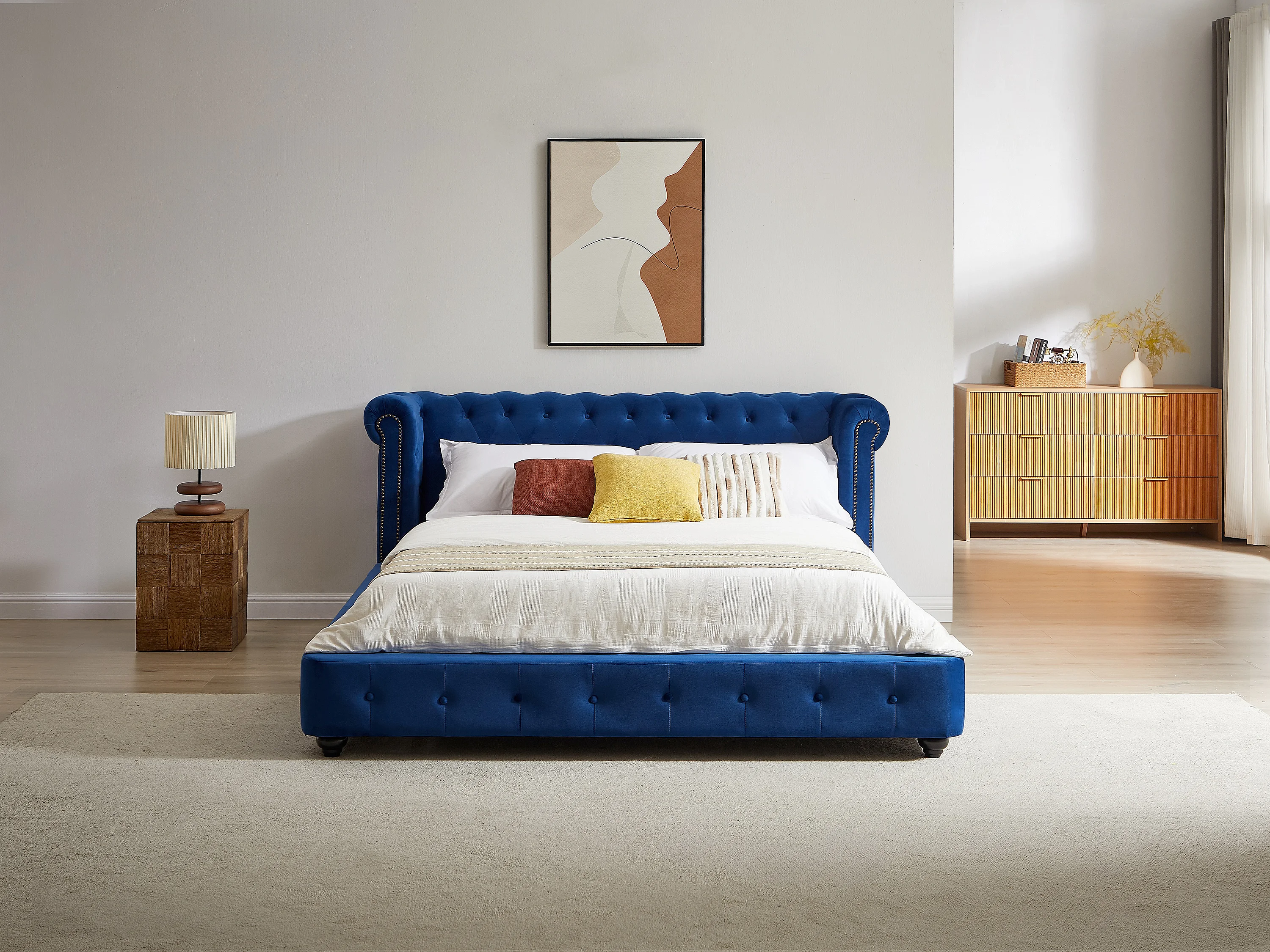 Letto Chesterfield 180 x 200 cm Velluto Blu reale - TONGERLA