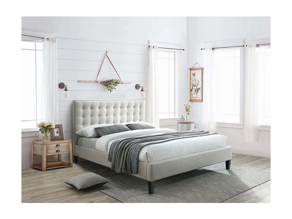 Letto matrimoniale con testiera capitonné 160 x 200 cm Beige - CHIARA