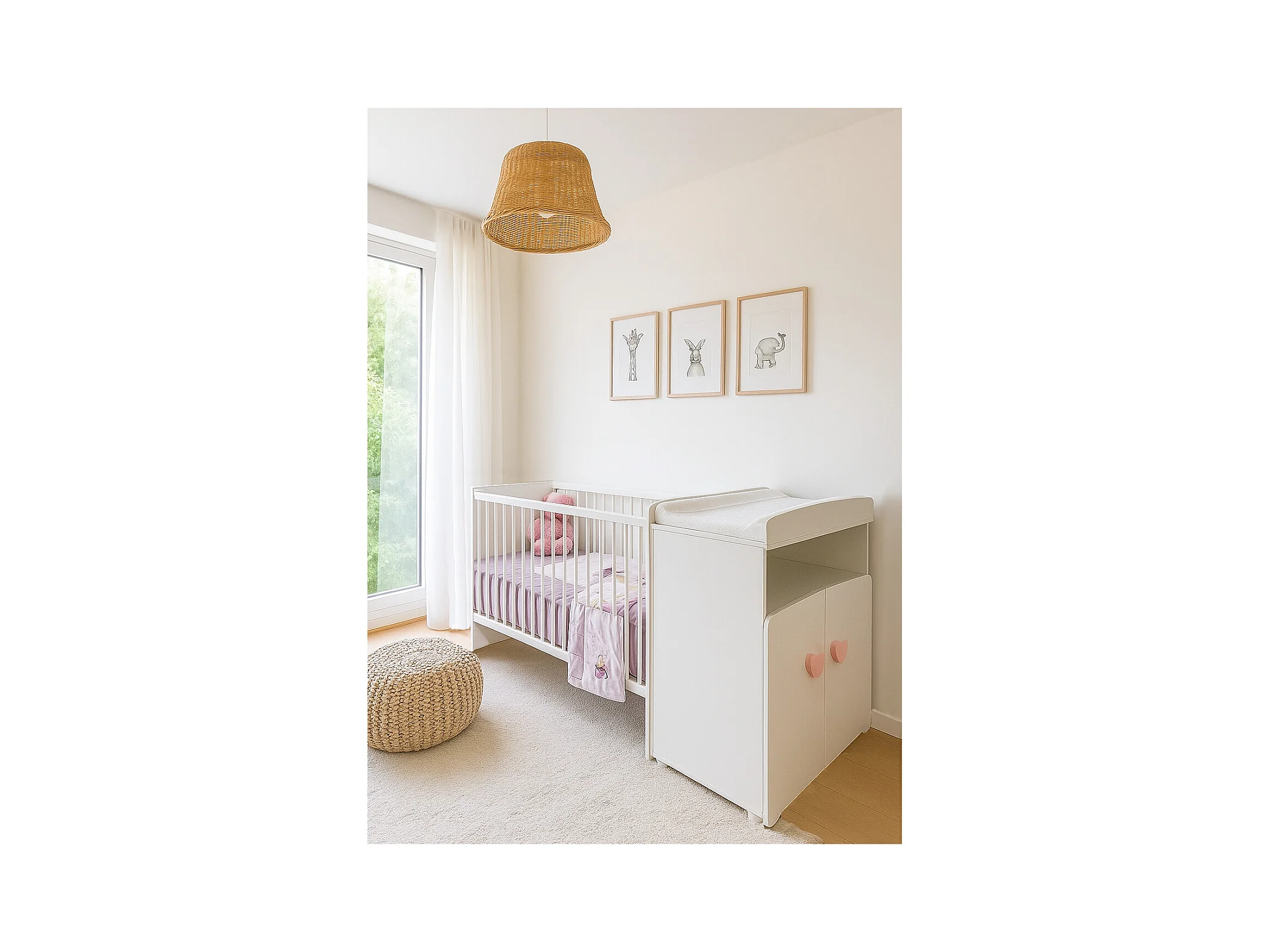 Lettino in legno 120x60 trasformabile in 90x190 con coprifasciatoio a 1 porta
