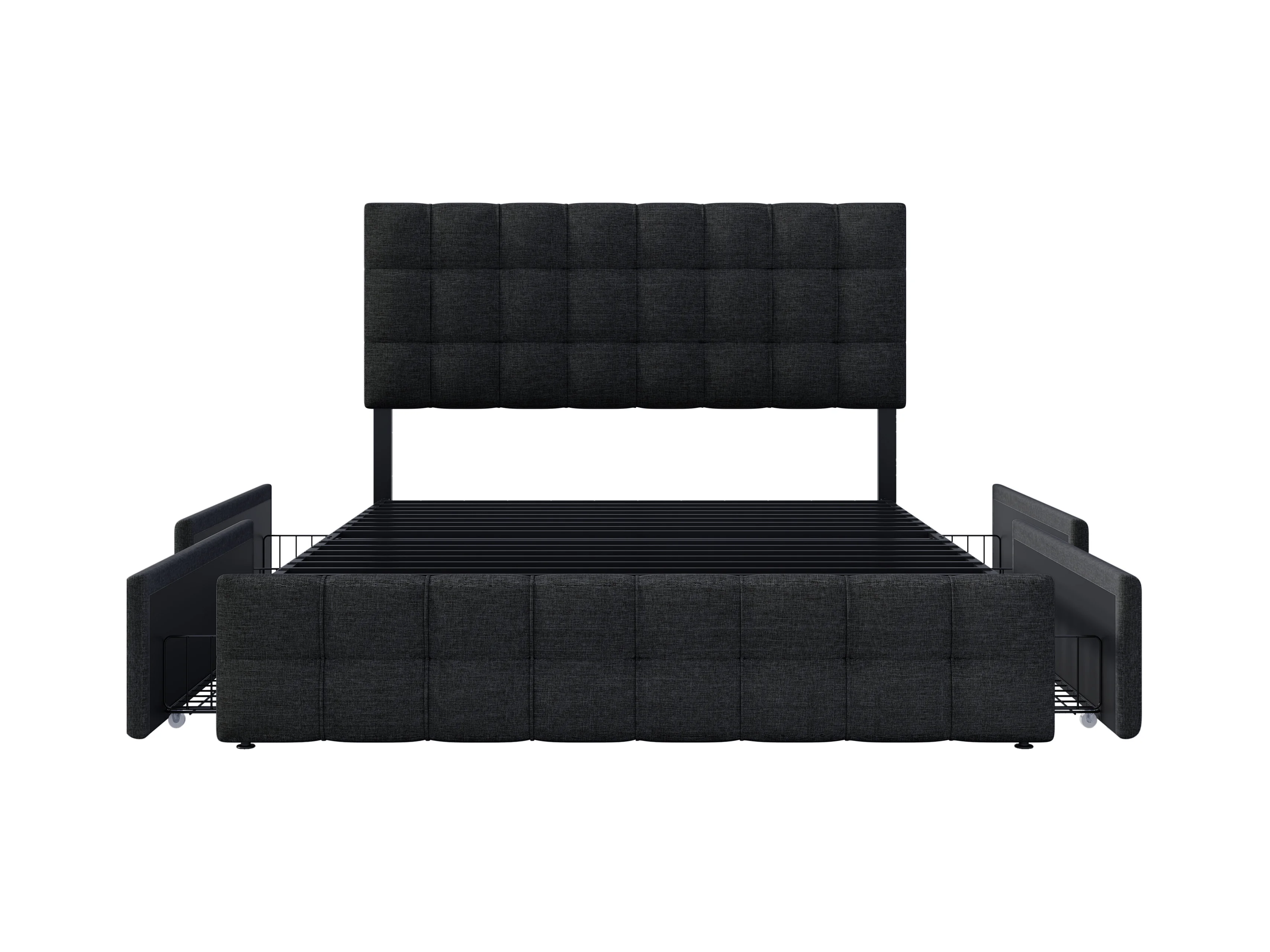 Letto imbottito in lino con 4 cassetti - testiera regolabile + base in metallo - 140x200 cm - nero