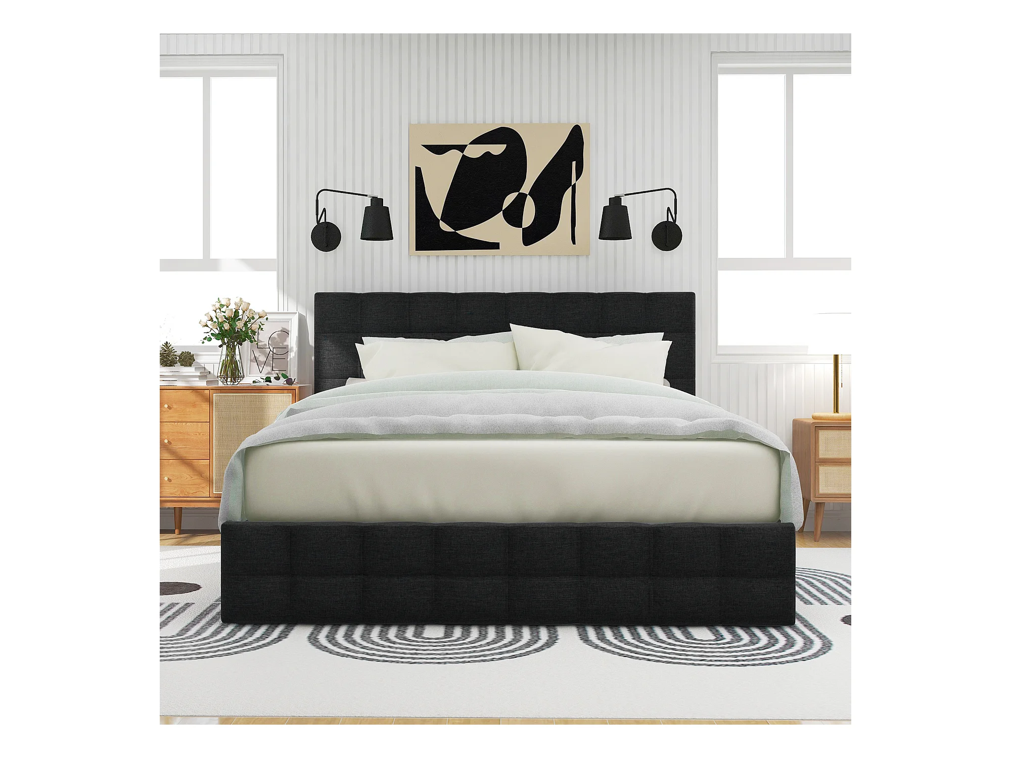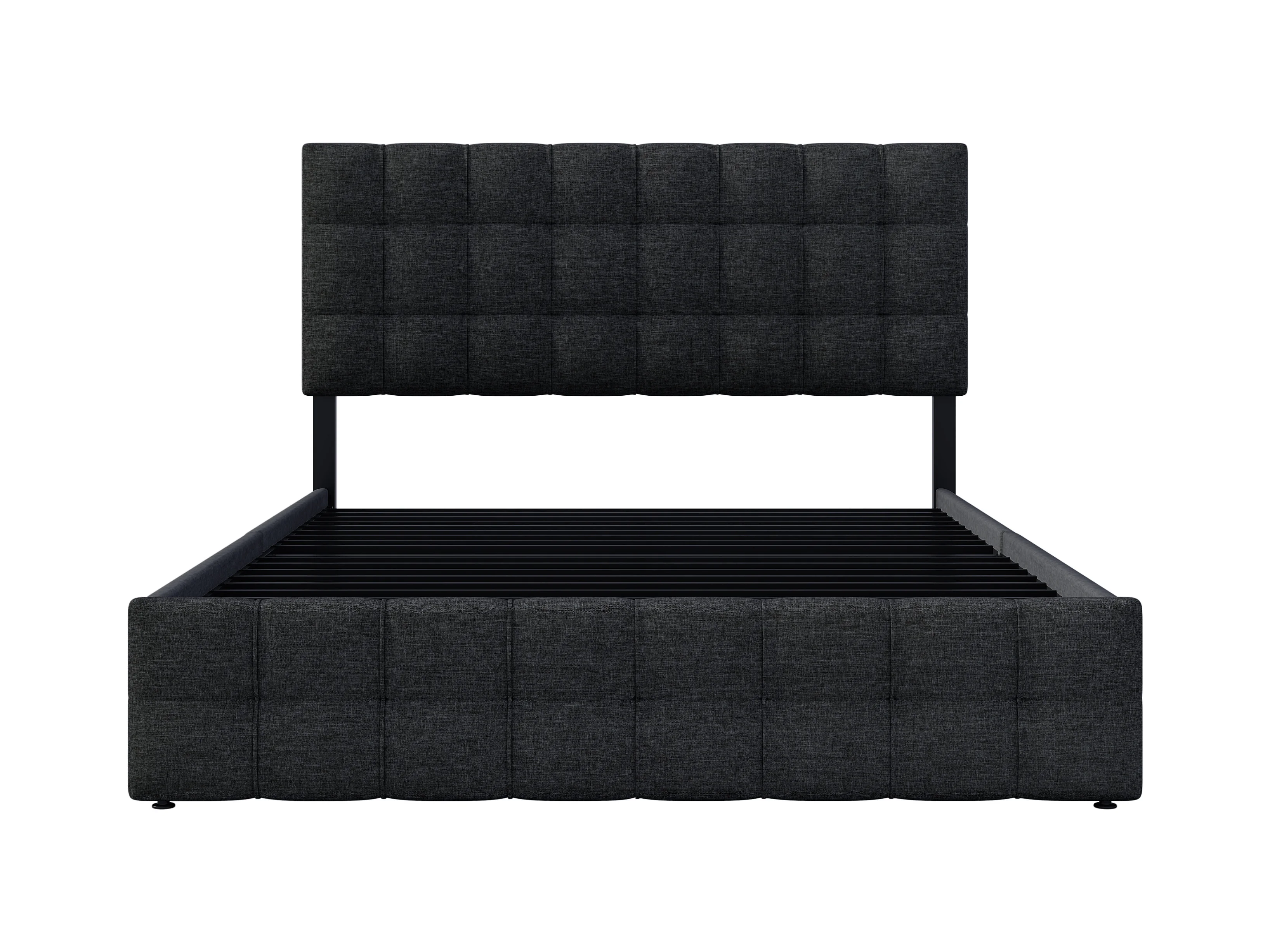 Letto matrimoniale 140x200 cm con 4 cassetti, testiera regolabile, struttura in lino nero (senza materasso)