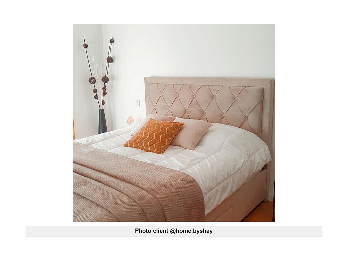 La praticità a portata di mano, senza sacrificare la bellezza e lo charme, con questo letto capitonné in tessuto con 4 cassetti!