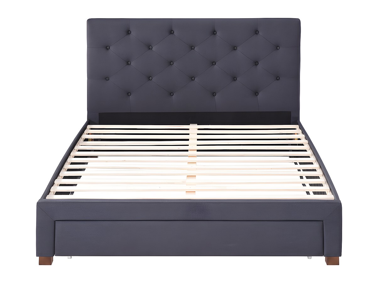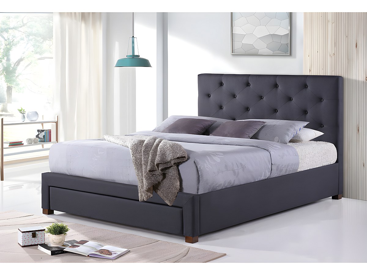 Letto matrimoniale alla francese con cassetto e testiera capitonné 140 x 190 cm in Tessuto Grigio - AGOSTINO