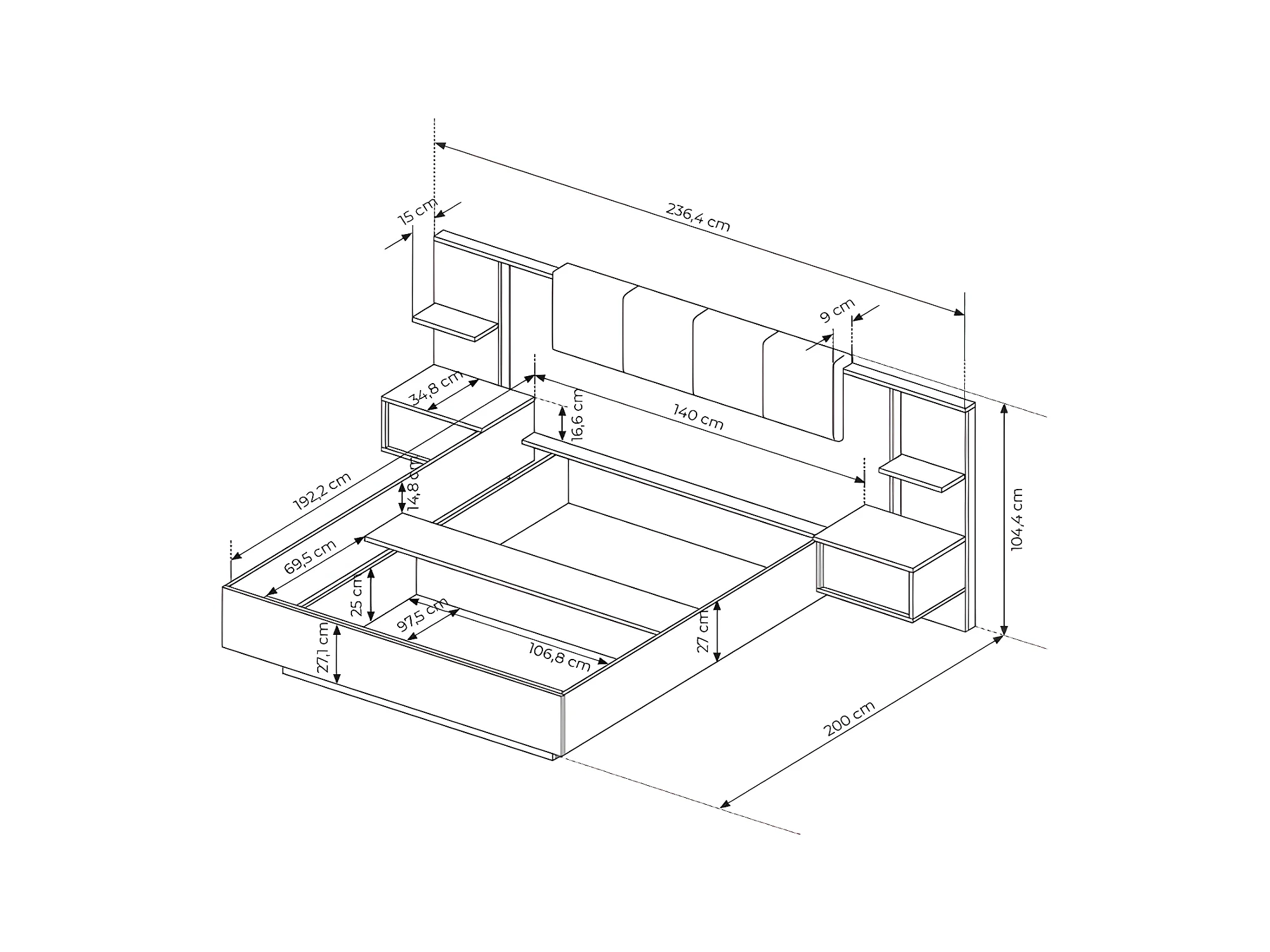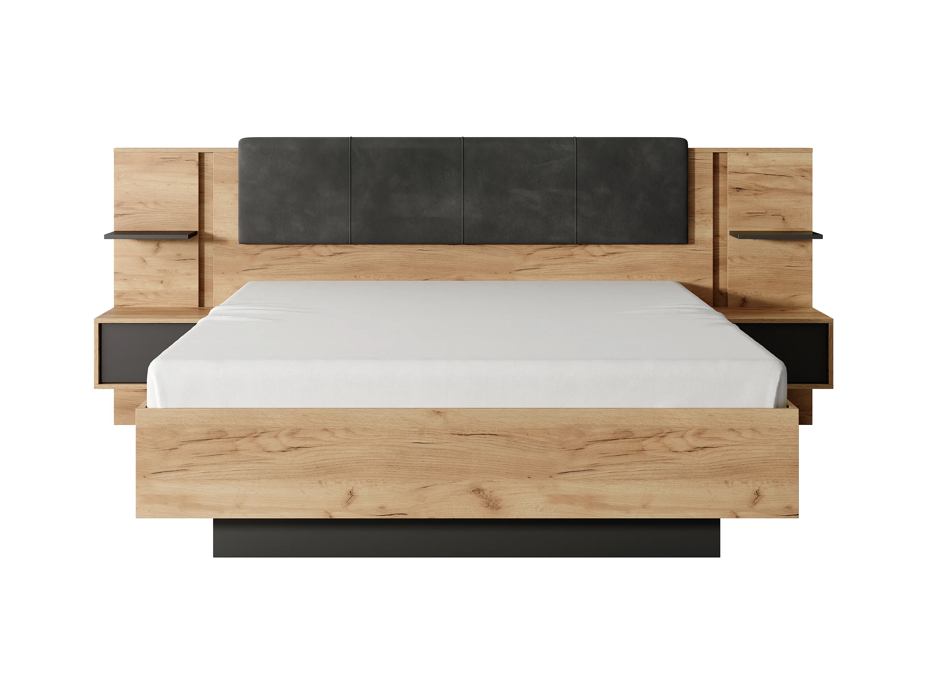 Letto con comodini 140 x 190 cm Con LED Naturale e Antracite + Rete - ELYNIA