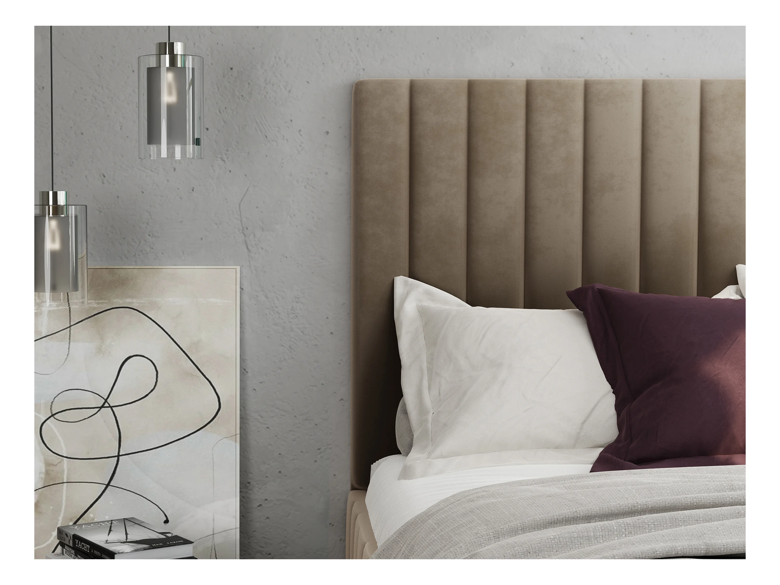 Letto con contenitore con testata letto cuciture verticali 180 x 200 cm Velluto Tortora - LARALI di Pascal Morabito