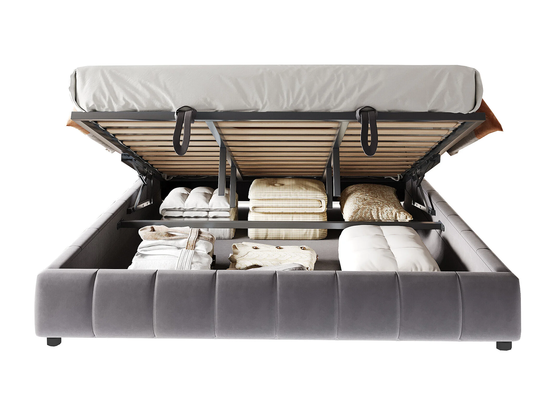 Letto con contenitore idraulico 180x200 cm, senza testiera, con LED integrato, rete sospesa con contenitore, grigio (214,5x195x29,5 cm)