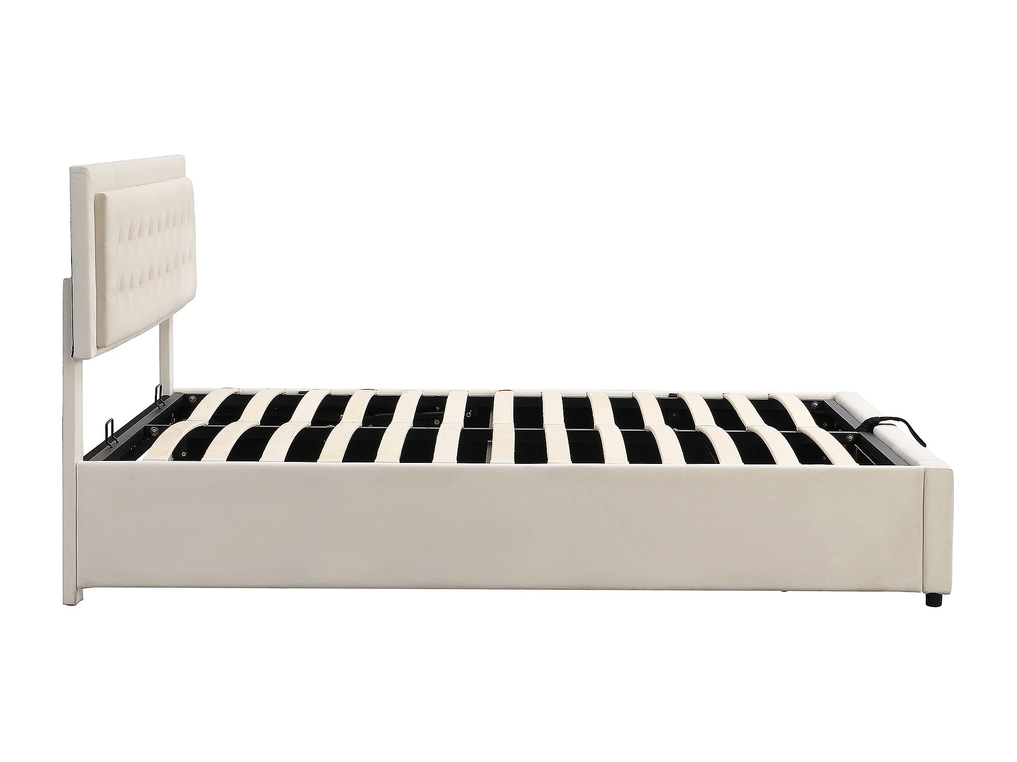 Letto con contenitore, testiera imbottita, velluto, beige, 160x200 cm