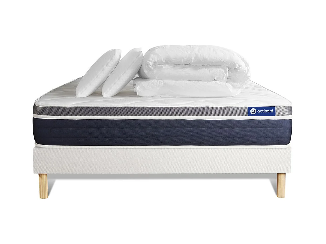 Pacchetto letto completo - Materasso 160x200cm + Box spring con doghe (in kit) + 2 cuscini + Piumino - Actiflex Confort