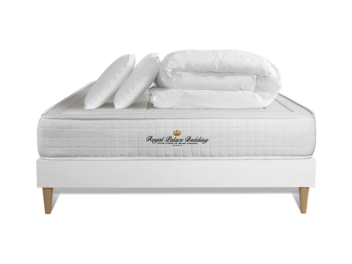 Pacchetto letto completo - Materasso 140x190cm + Box spring con doghe (kit) + 2 cuscini + Piumino - Balmoral