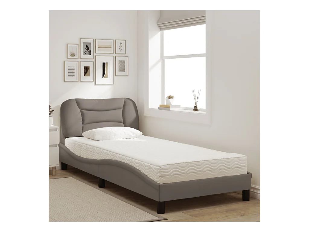 Letto con materasso grigio chiaro 90x200 cm tessuto