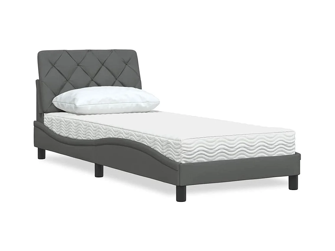 Letto con materasso grigio scuro 90x190 cm tessuto