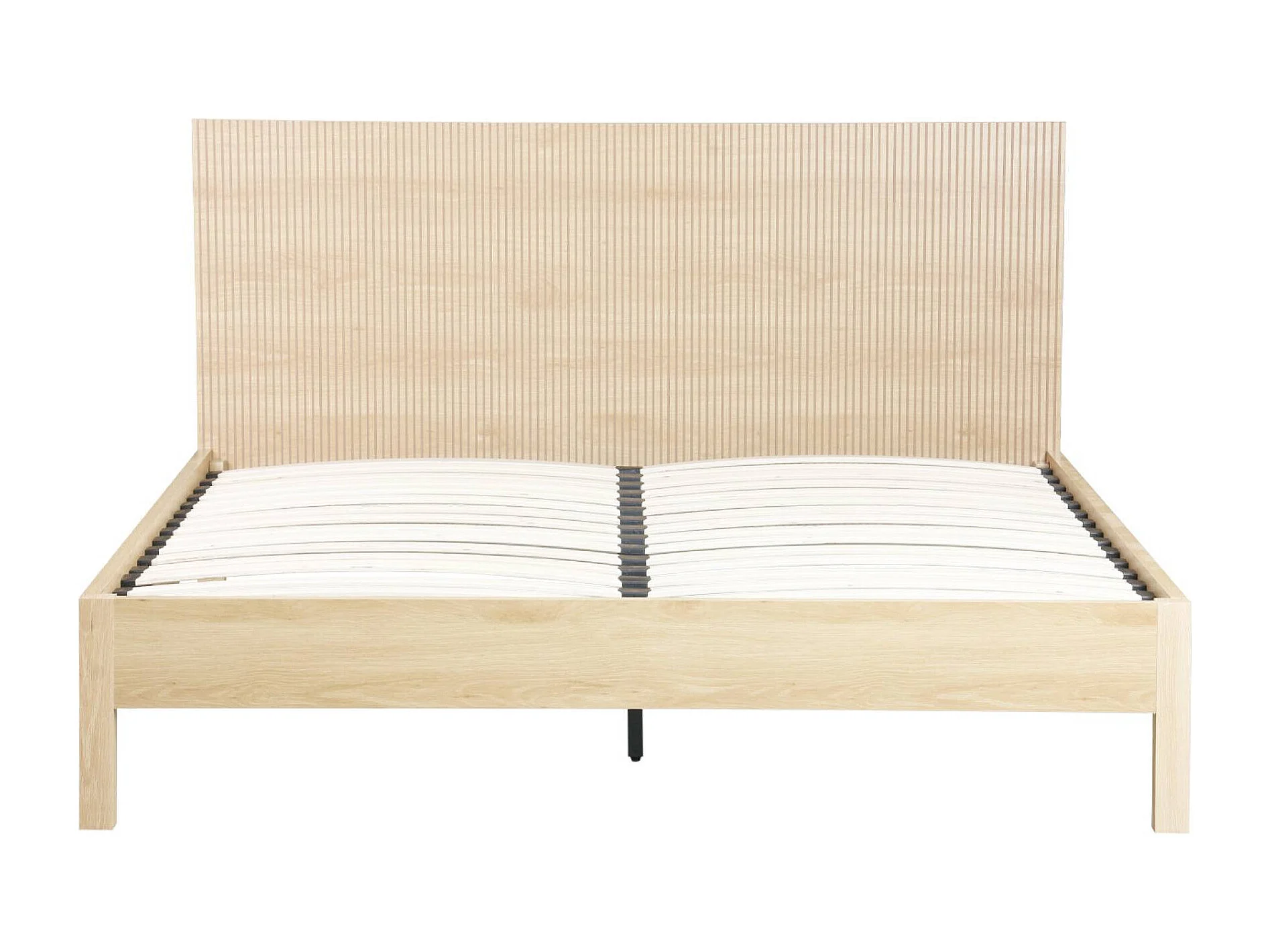 Letto con rete a doghe e testiera 200cm decorazione legno, marrone