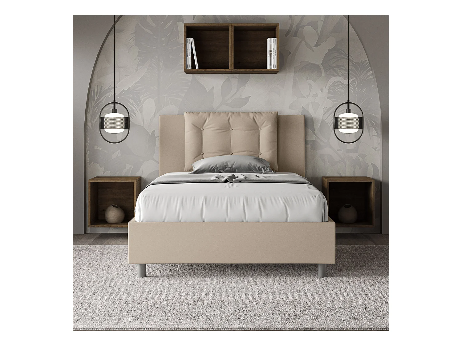 Letto con rete imbottito 120x190 similpelle tortora Annalisa