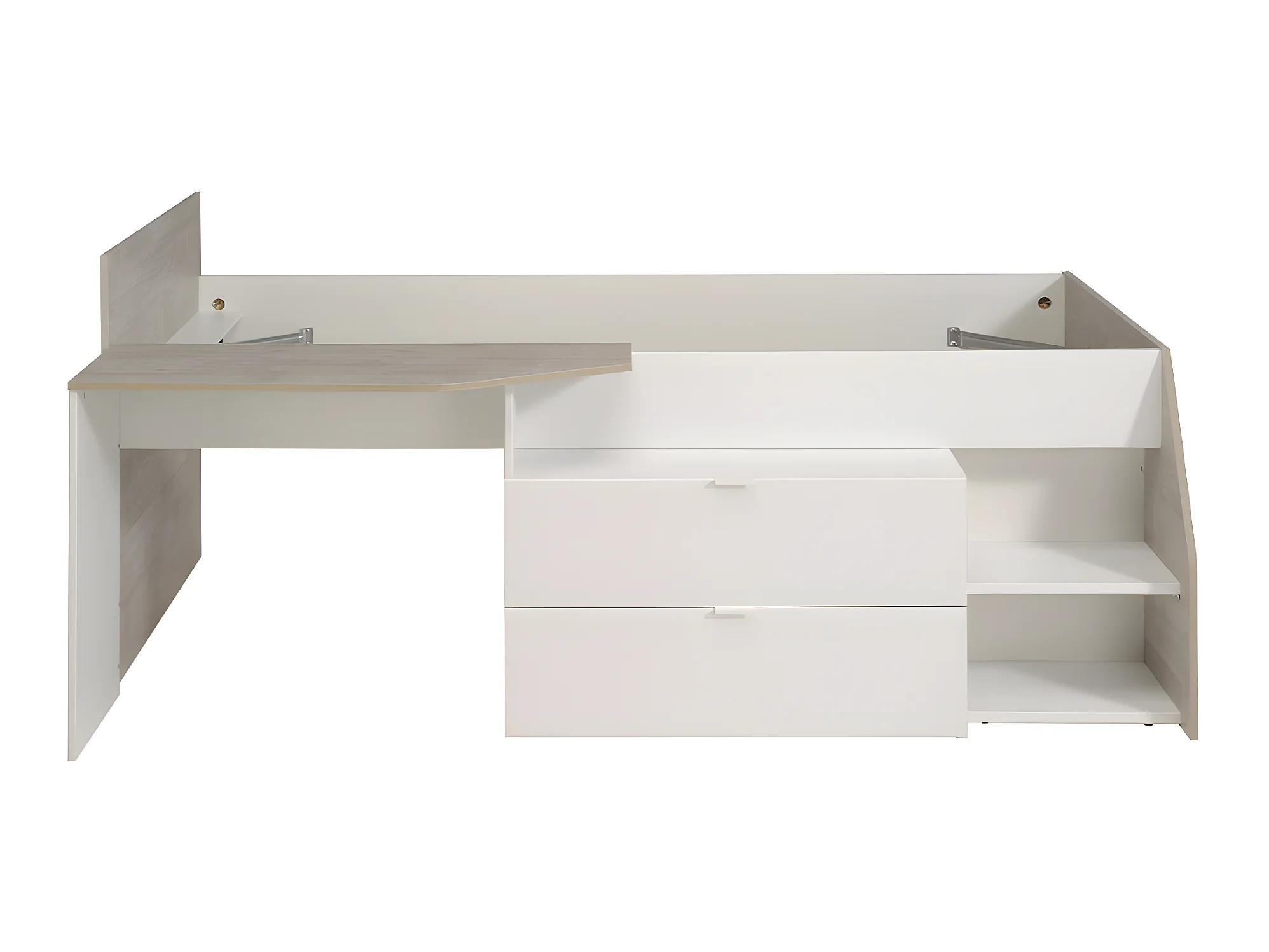 Letto con scrivania e vani portaoggetti inclusi 90 x 190/200 cm Bianco e naturale + materasso + rete GISELE
