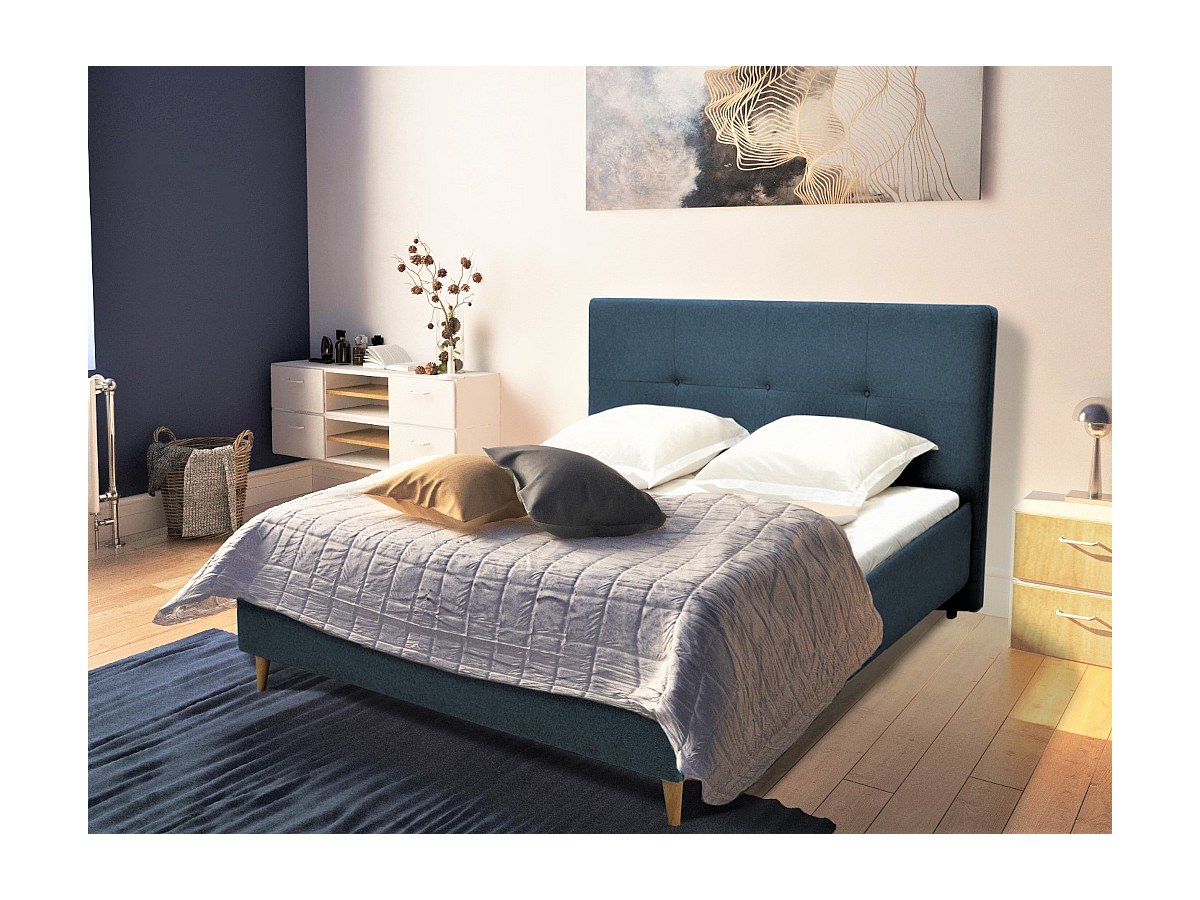 Letto con testiera letto imbottita 140 x 190 cm in Tessuto Blu - LUCAS