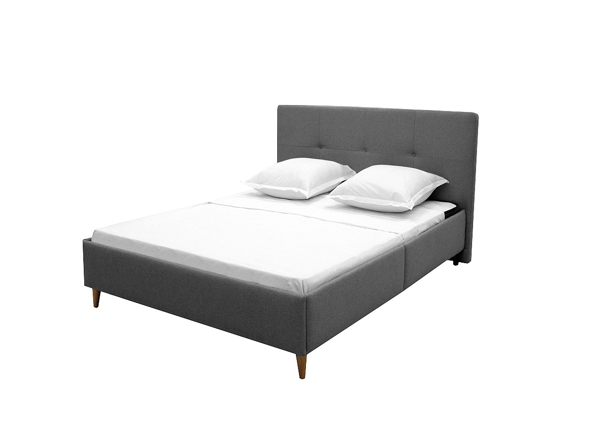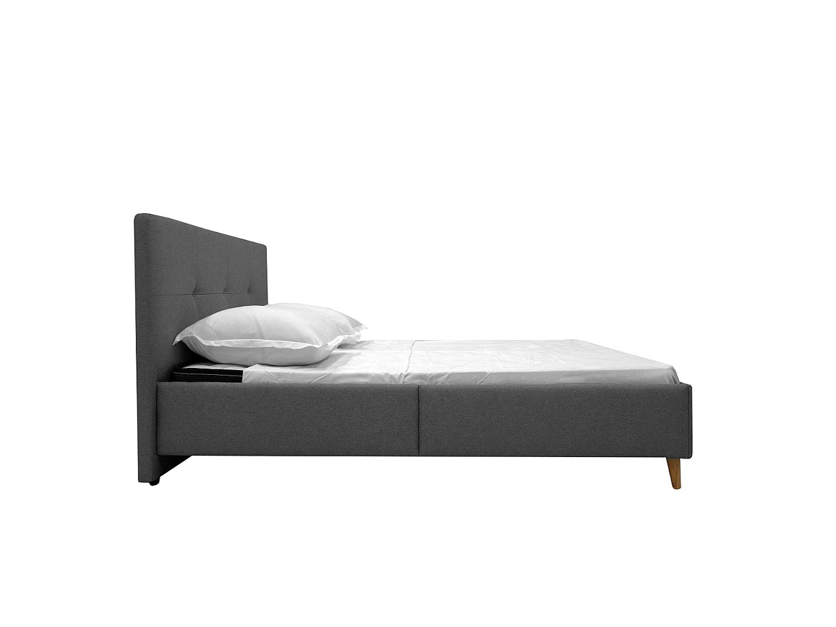Letto con testiera letto imbottita 140 x 190 cm in Tessuto Grigio - LUCAS