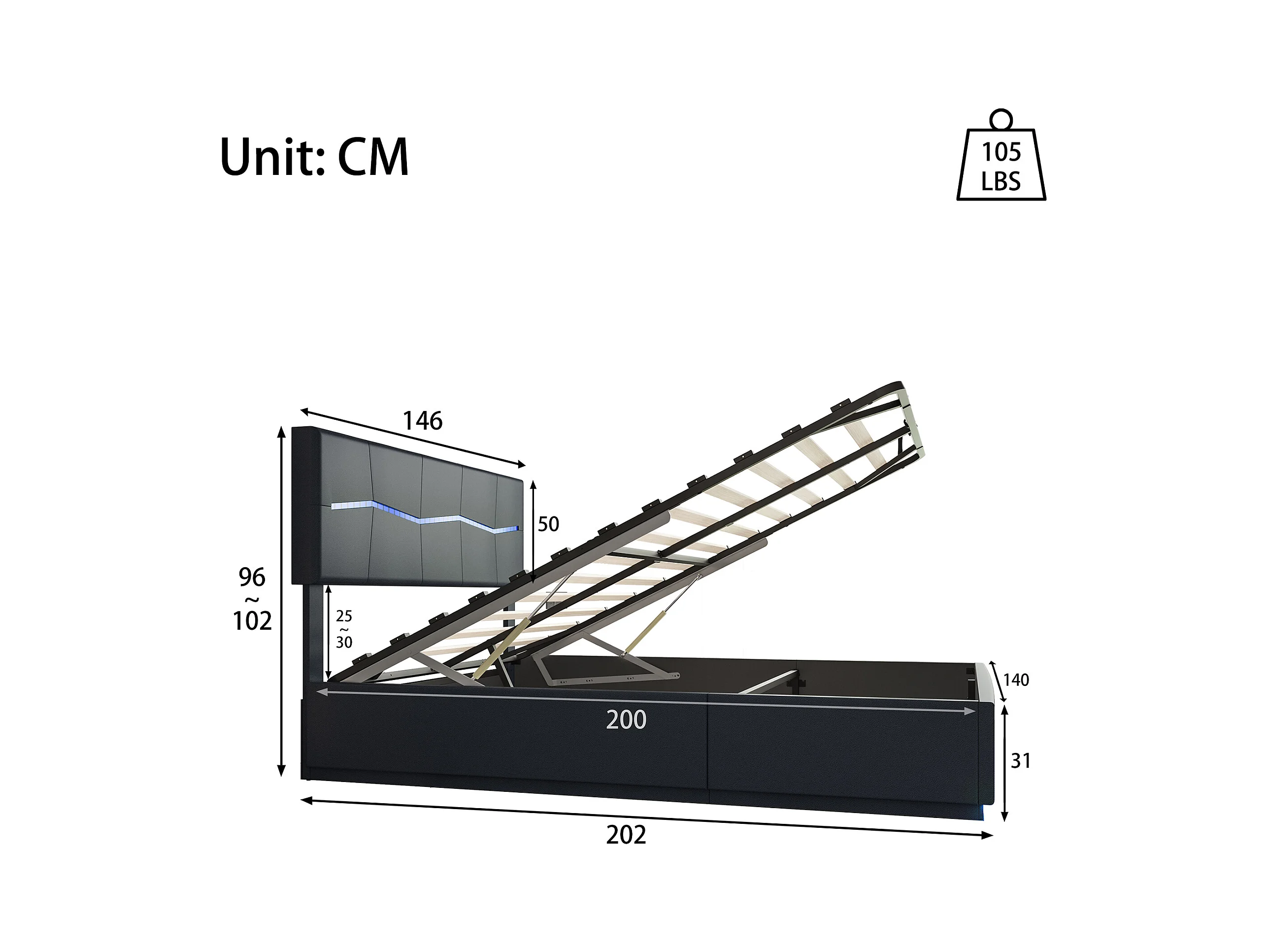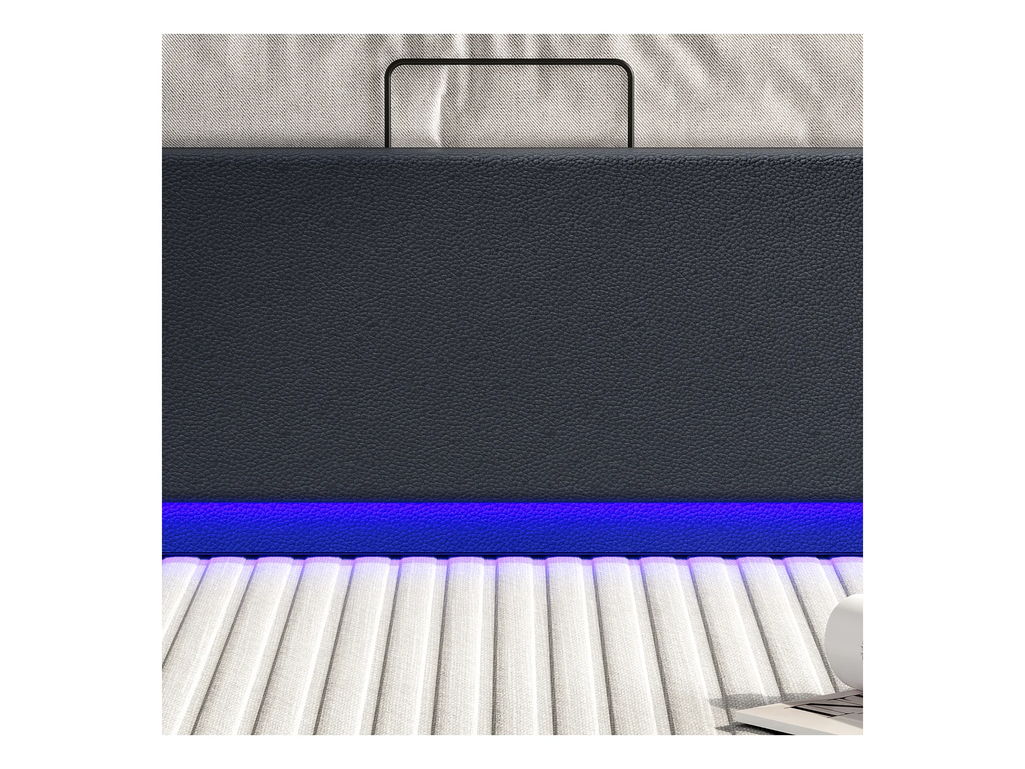 Letto LED, 140\200 cm, con rete a doghe e contenitore, testiera illuminata, nero, PU e legno (Dimensioni: 198,76 x 31,12 x 19,05 cm)