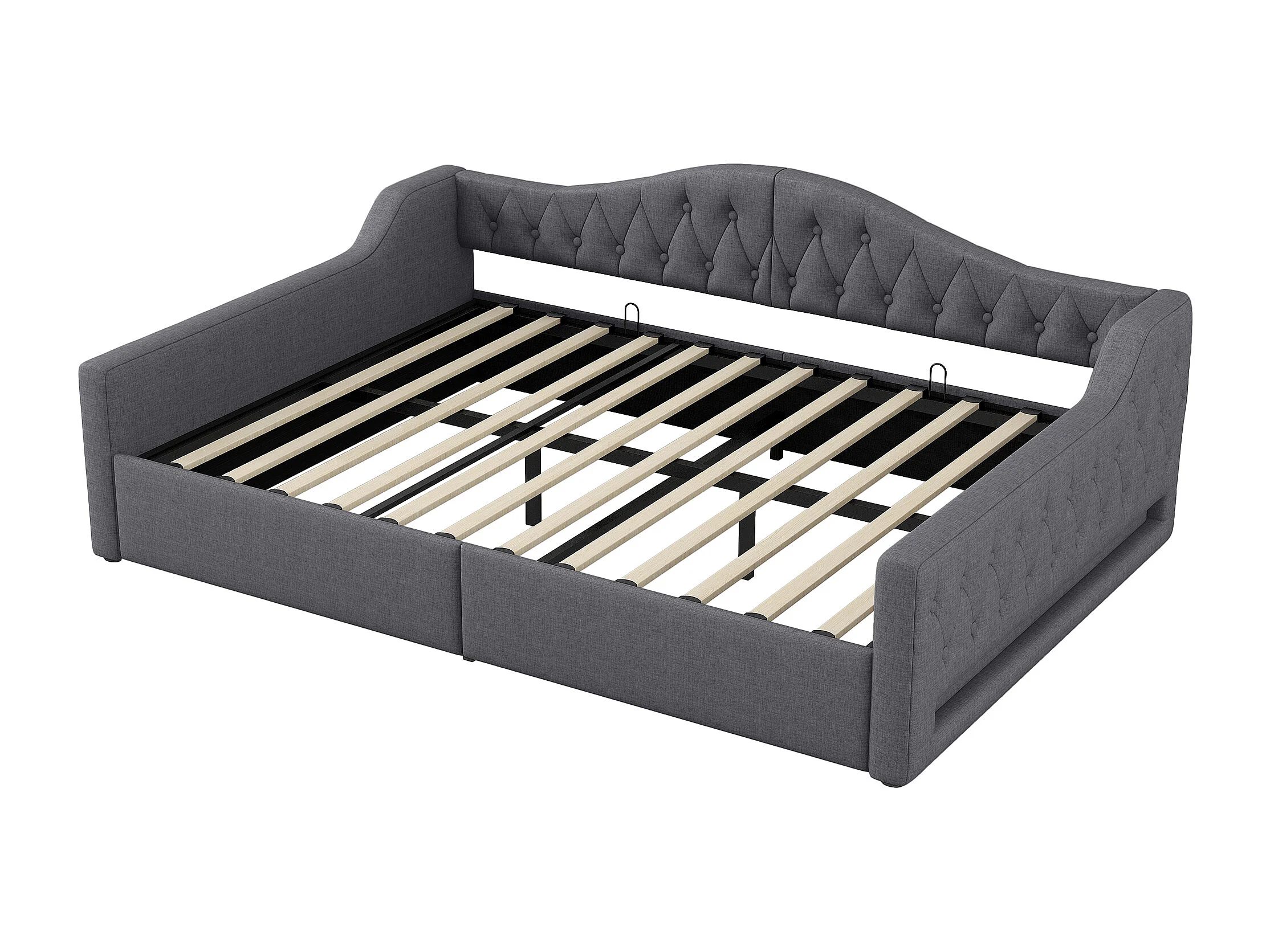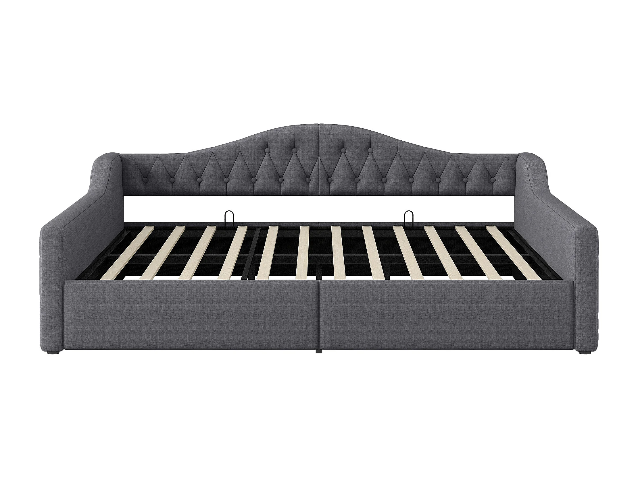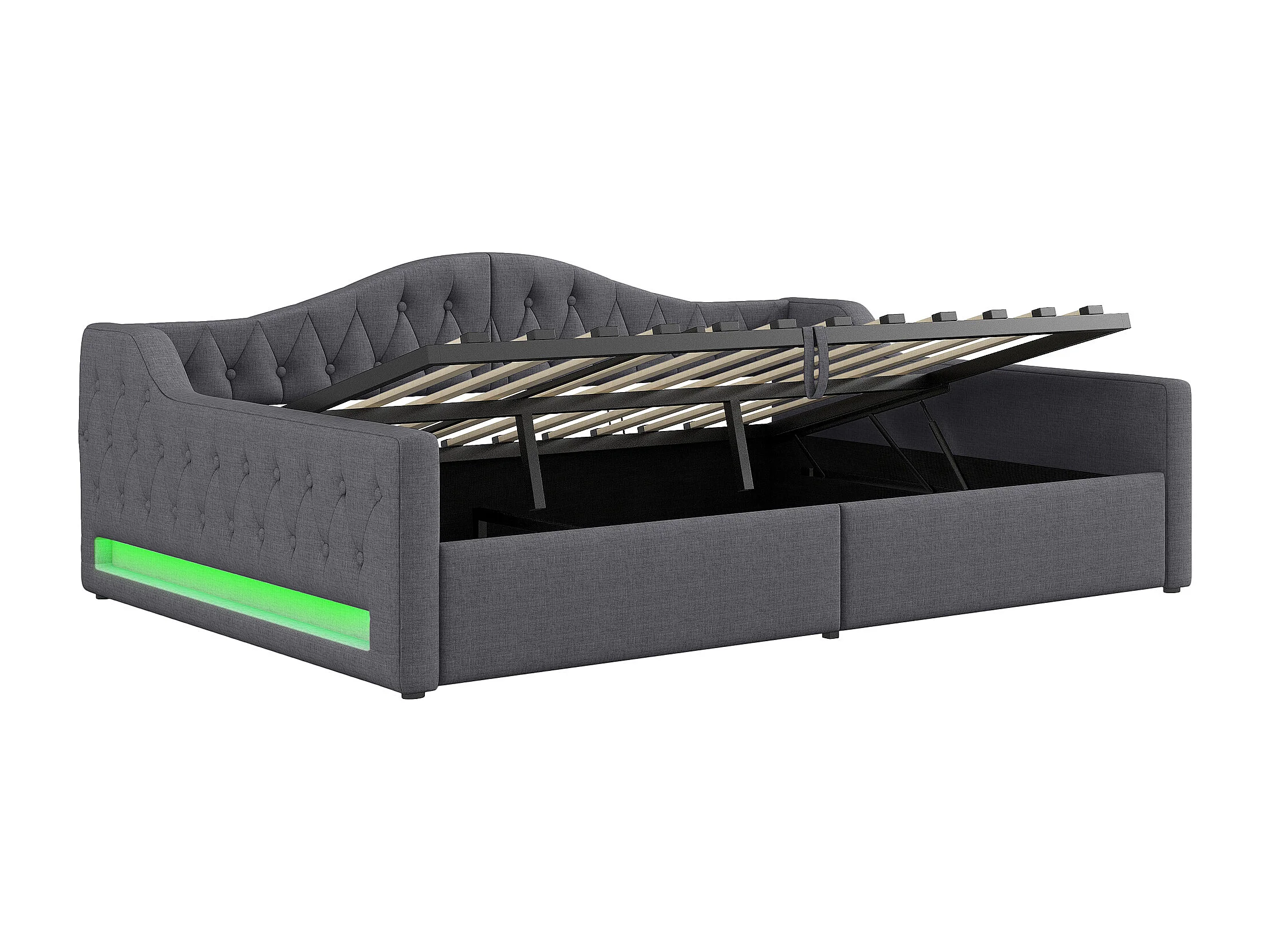 Letto contenitore 140 x 200 cm - Letto per adulti con illuminazione a LED e braccioli - lino grigio - senza materasso