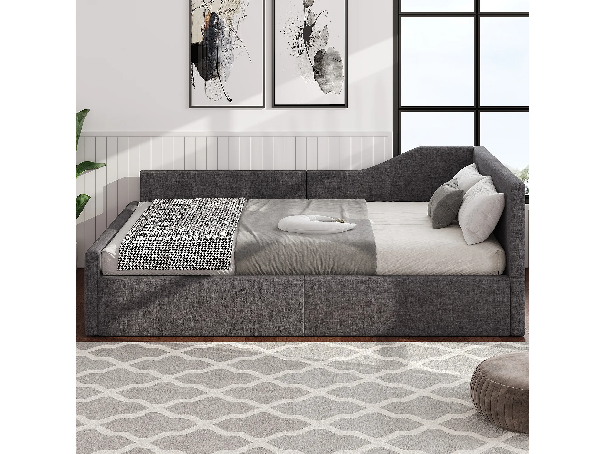 Letto contenitore 140 x 200 cm - Letto per adulti con schienale e braccioli - lino grigio - senza materasso