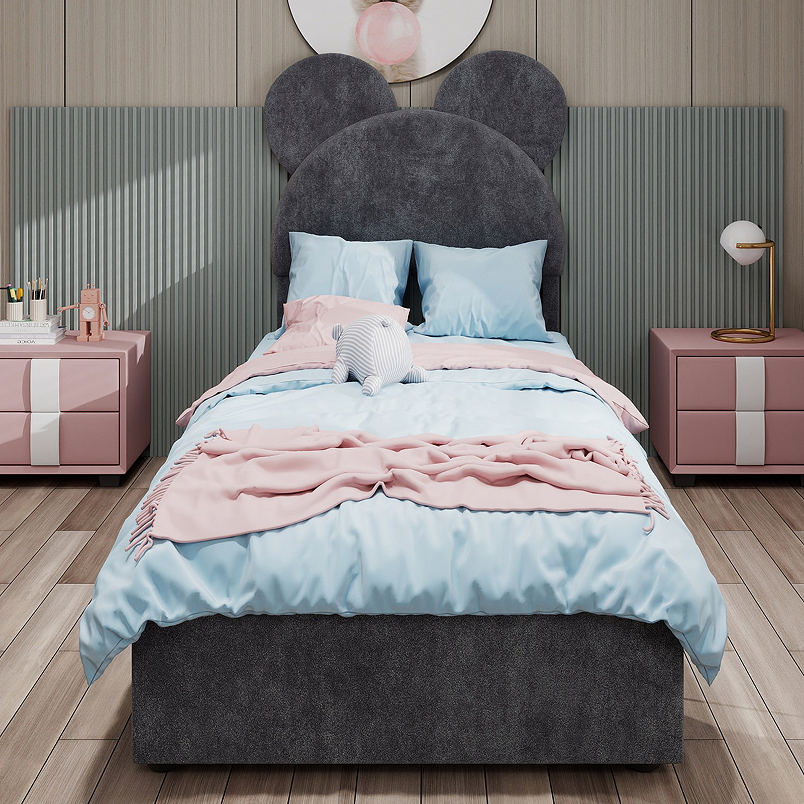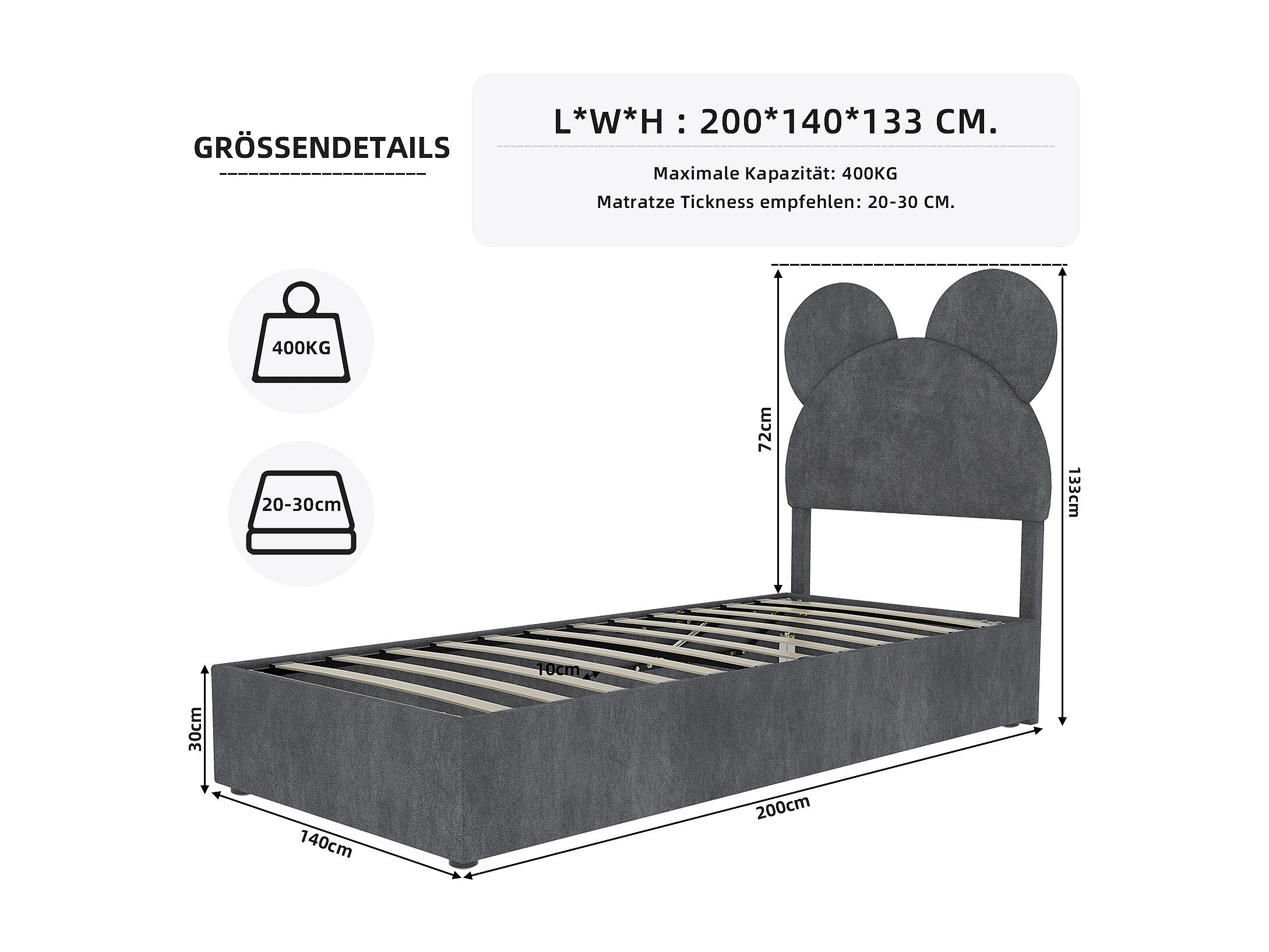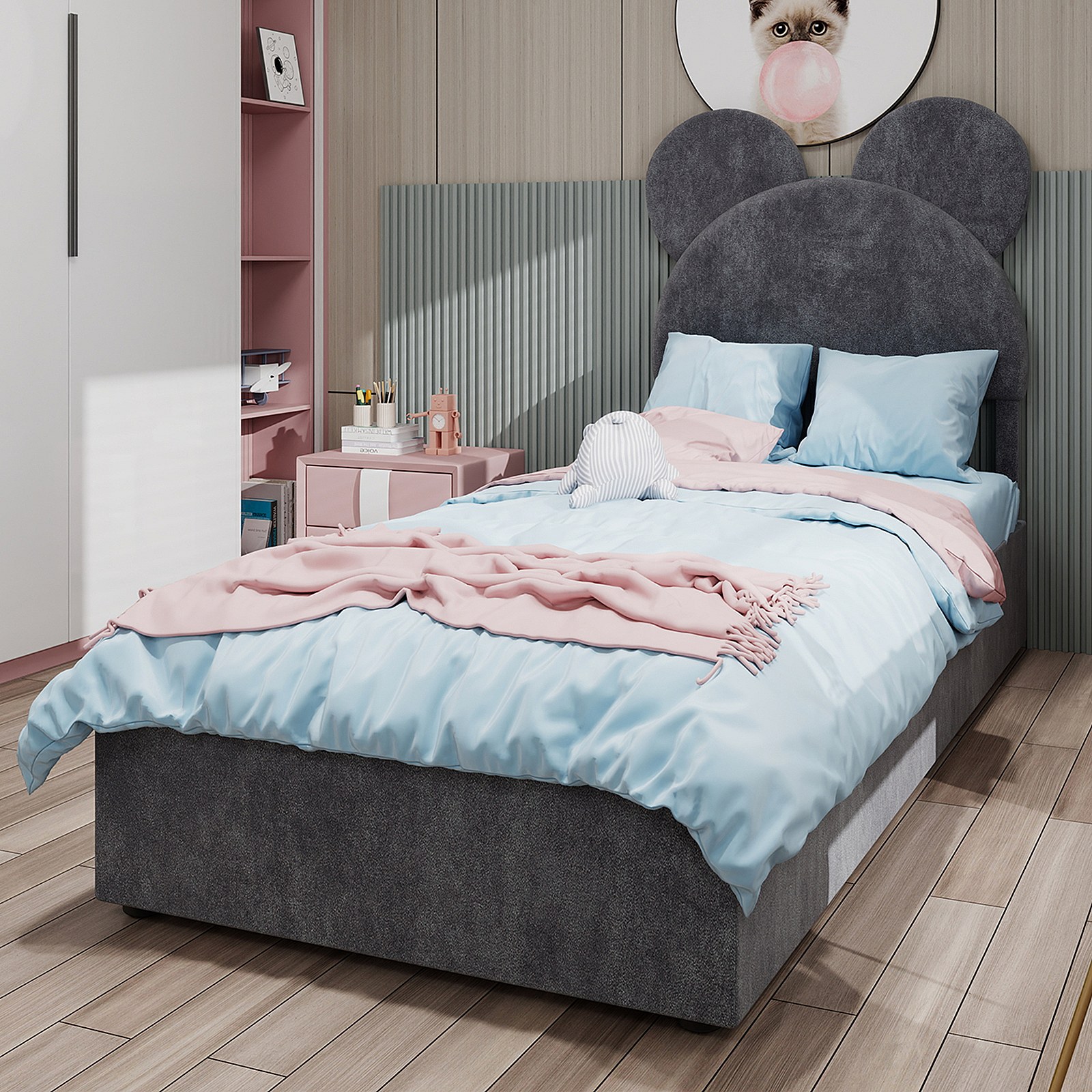 Letto contenitore 140 x 200 cm - Letto per bambini con testiera e base a fumetti - velluto grigio - materasso non incluso