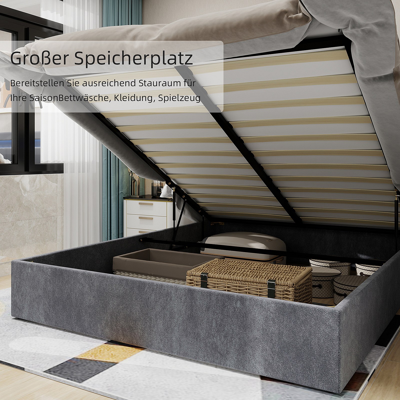 Letto contenitore minimalista 140x200cm in lino grigio senza testiera con contenitore idraulico (senza materasso)