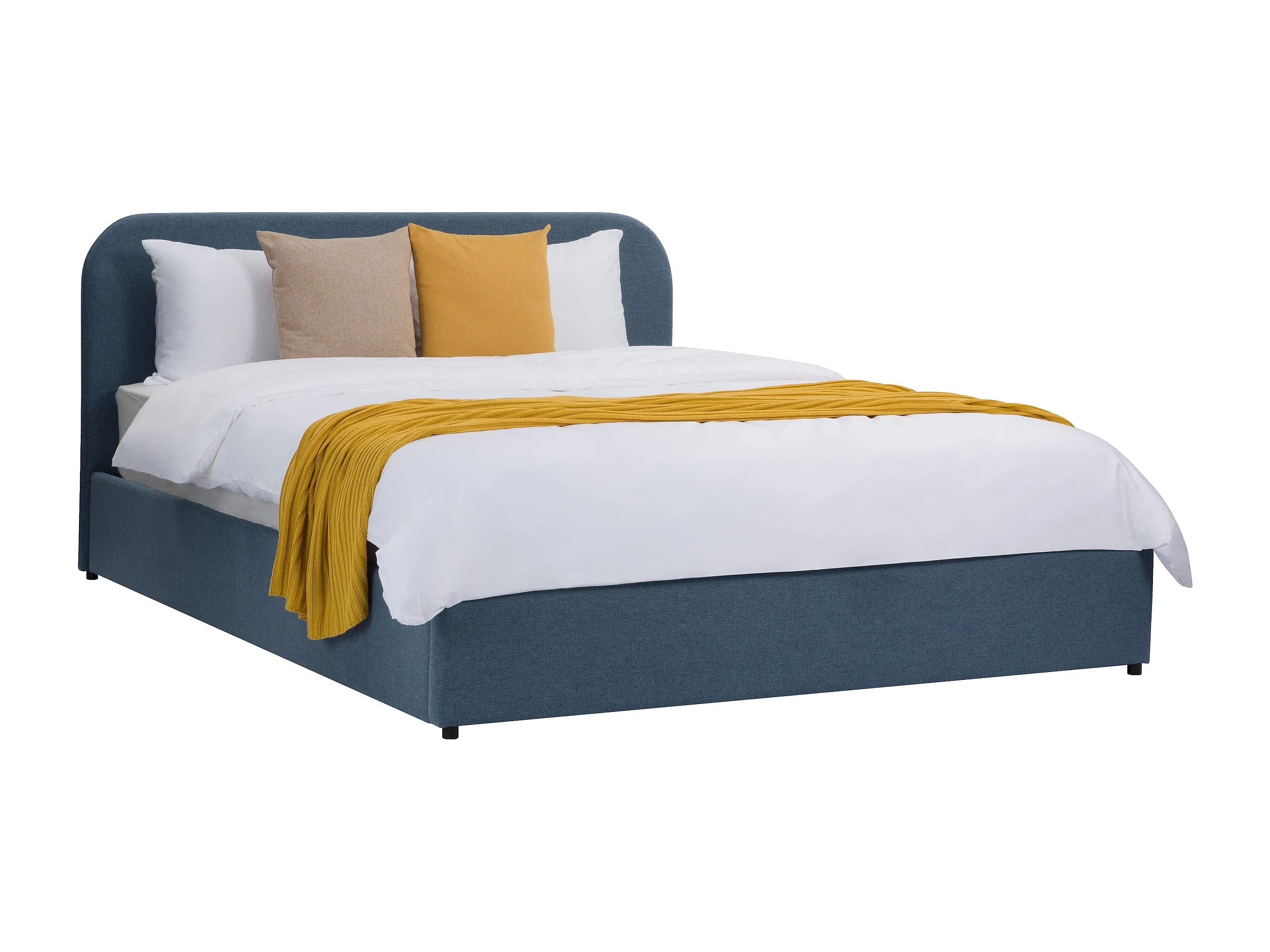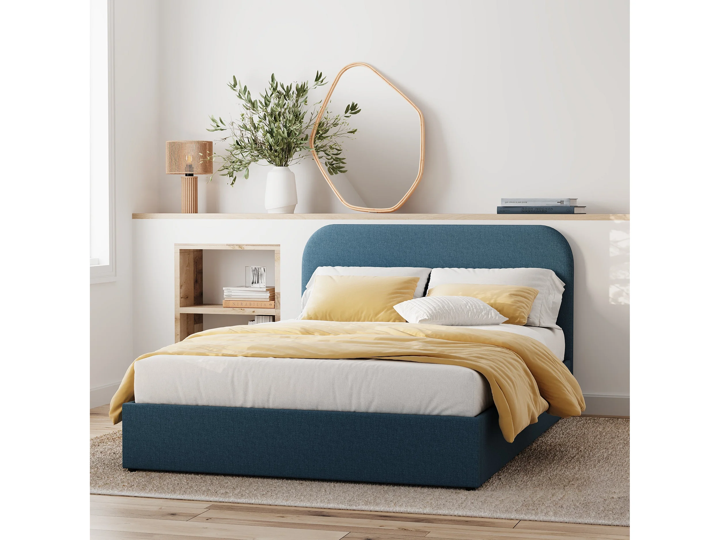 Letto matrimoniale con contenitore 140x190 cm in tessuto blu - Tilly
