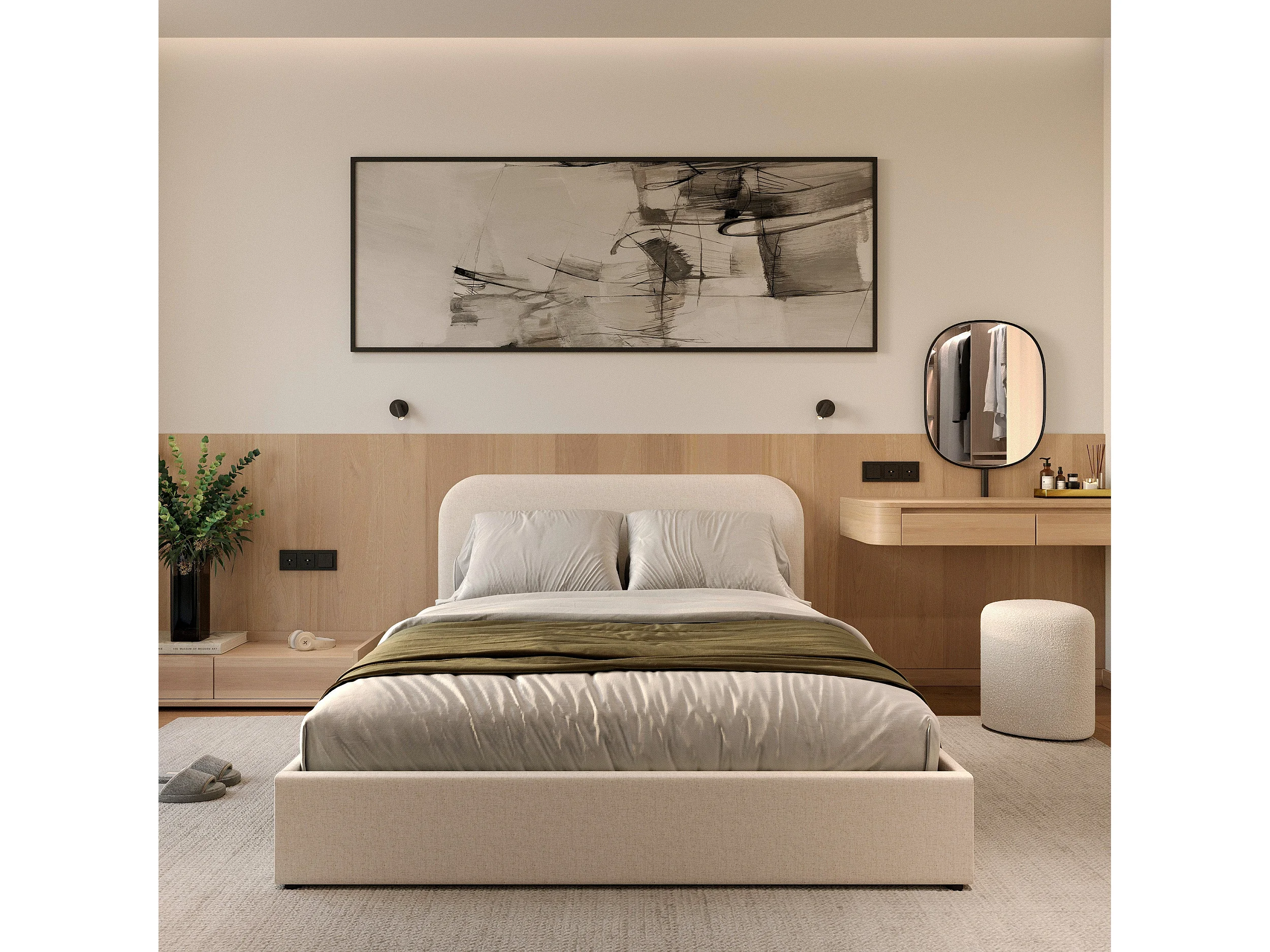 Letto matrimoniale con contenitore 140x190 cm in tessuto grigio/beige - Tilly