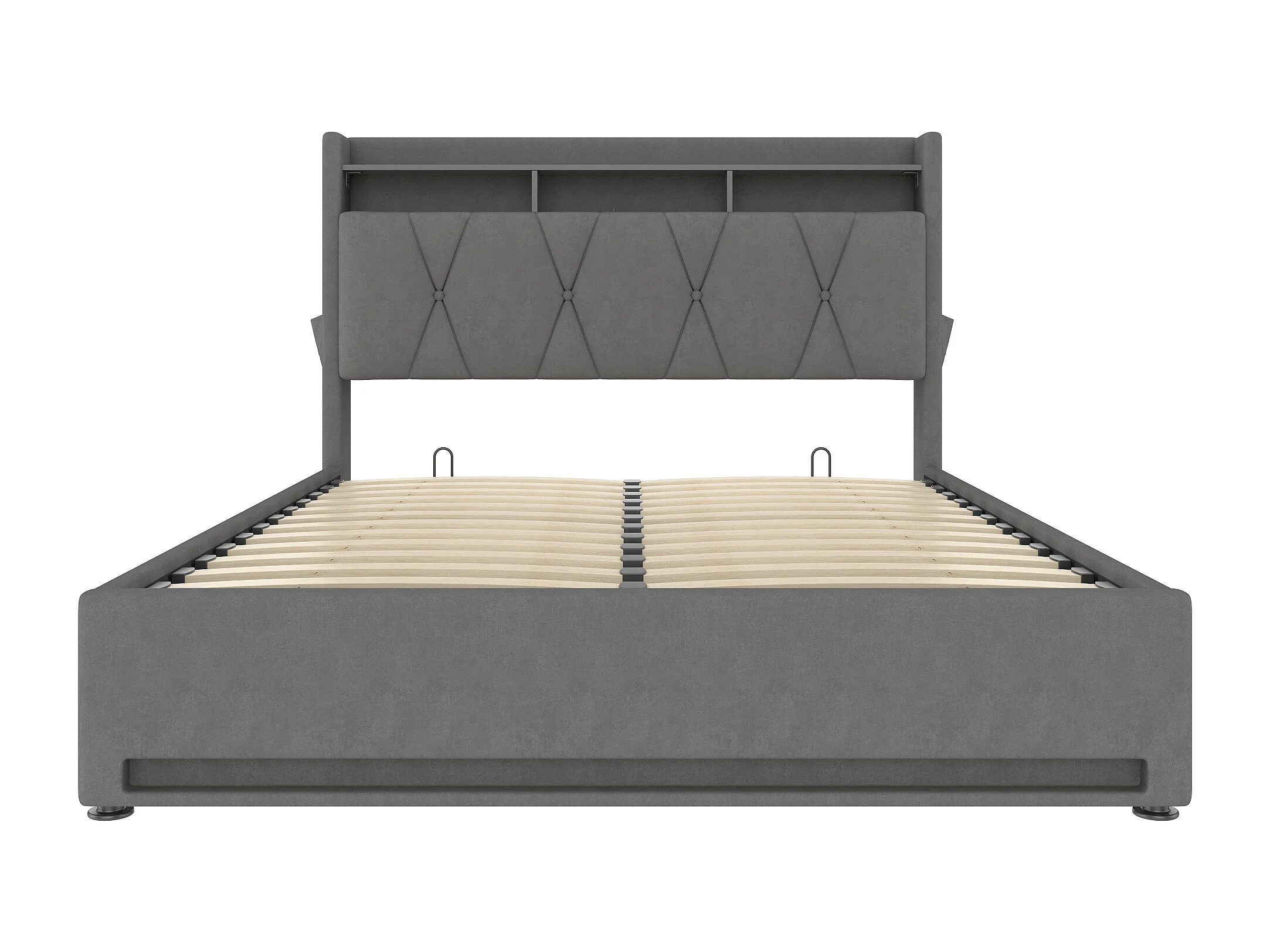 Letto contenitore 160 x 200 cm - con testiera con contenitore e illuminazione a LED - velluto grigio - senza materasso