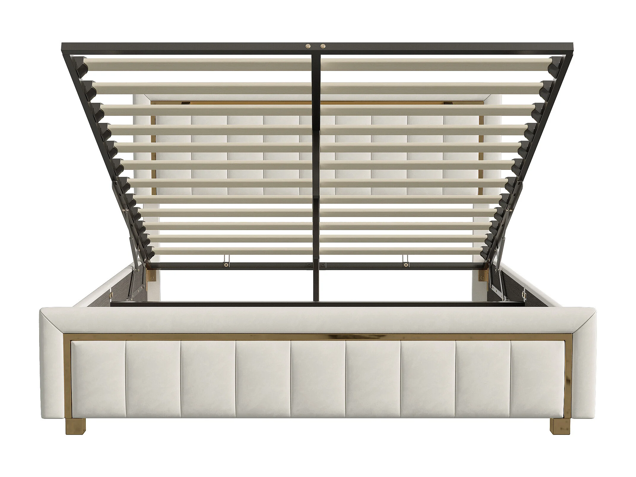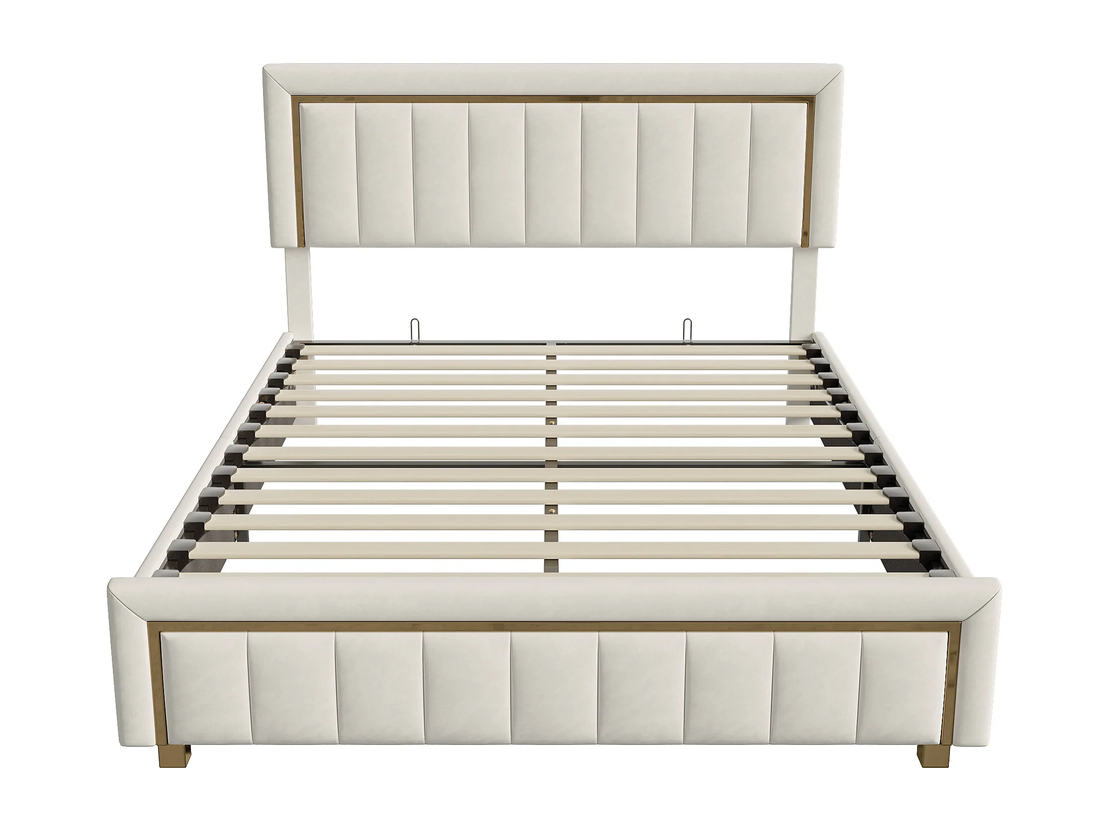 Letto Contenitore 160x200 cm Velluto Beige con Testiera Imbottita e Contenitore, Design Scandinavo Contemporaneo, Capacità 250 kg, Senza Materasso