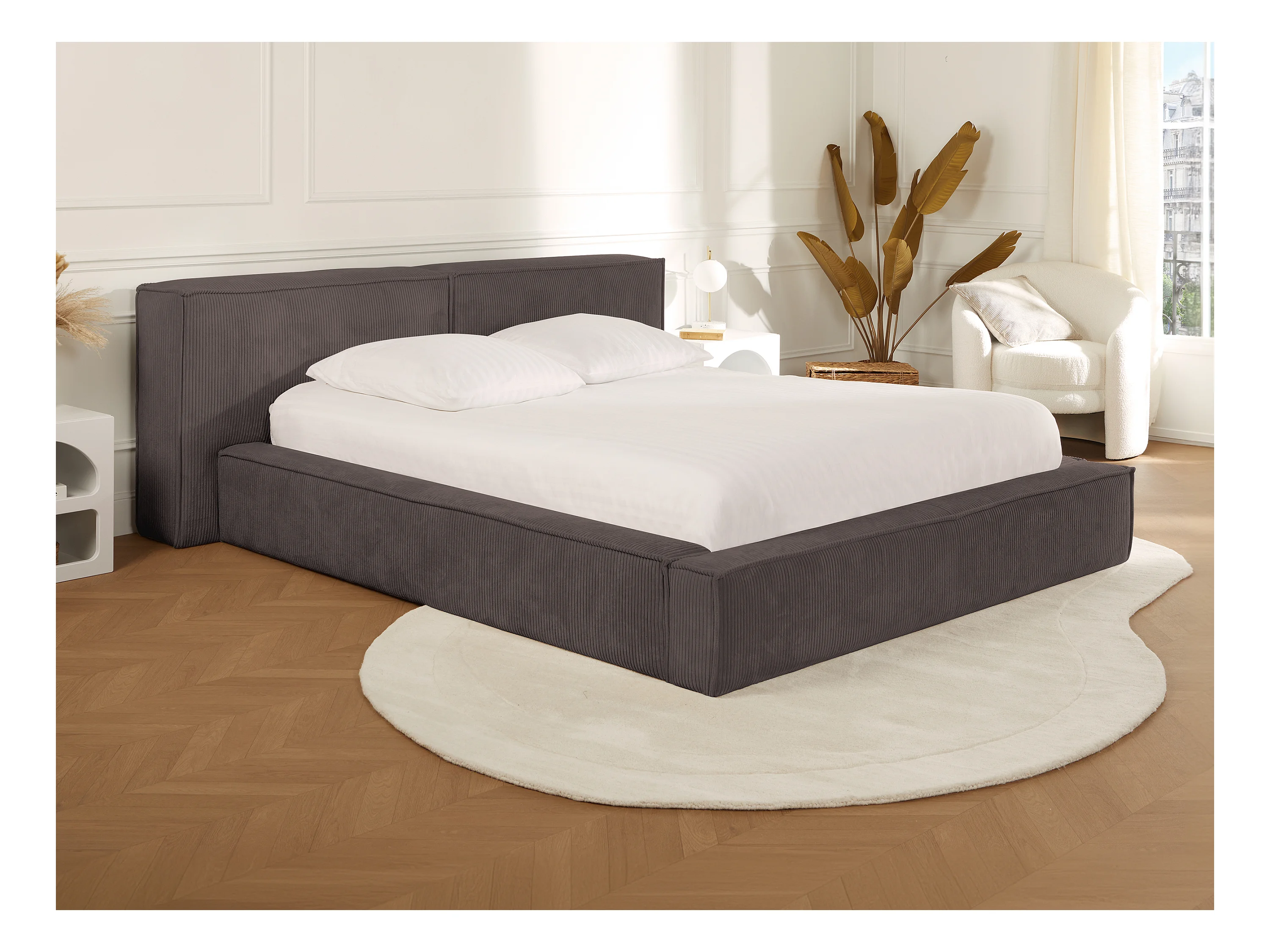 Letto contenitore 180 x 200 cm in Velluto a coste Tortora + Materasso TIMANO di Pascal Morabito