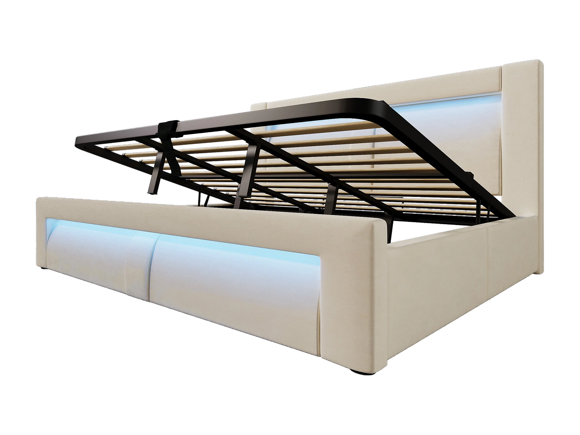 Letto contenitore 180x200 cm con LED e USB - Letto matrimoniale per adulti in velluto beige (materasso non incluso)