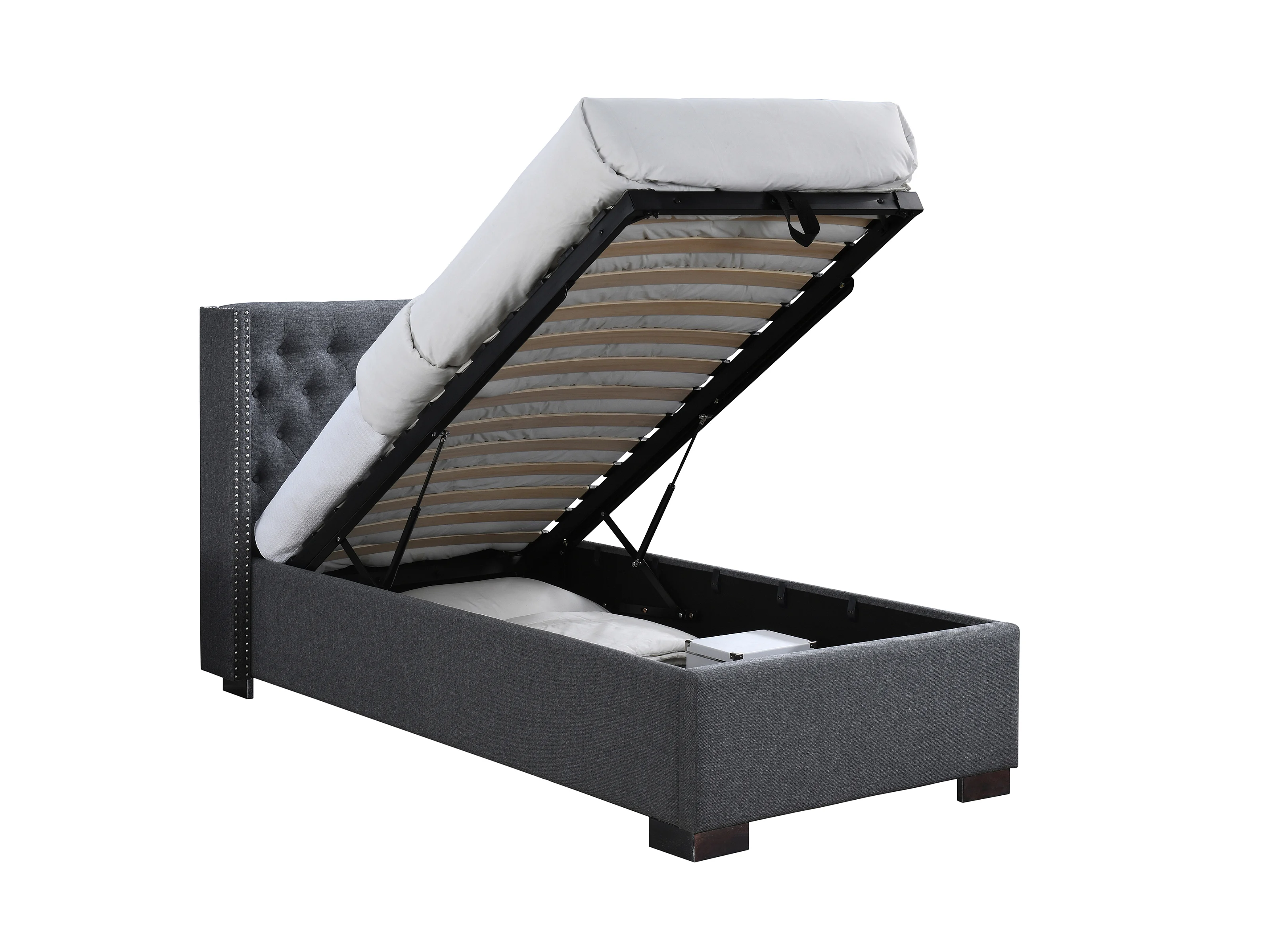Letto con contenitore con Testata trapuntata + Materasso - 90 x 200 cm - Tessuto - Grigio - MASSIMO