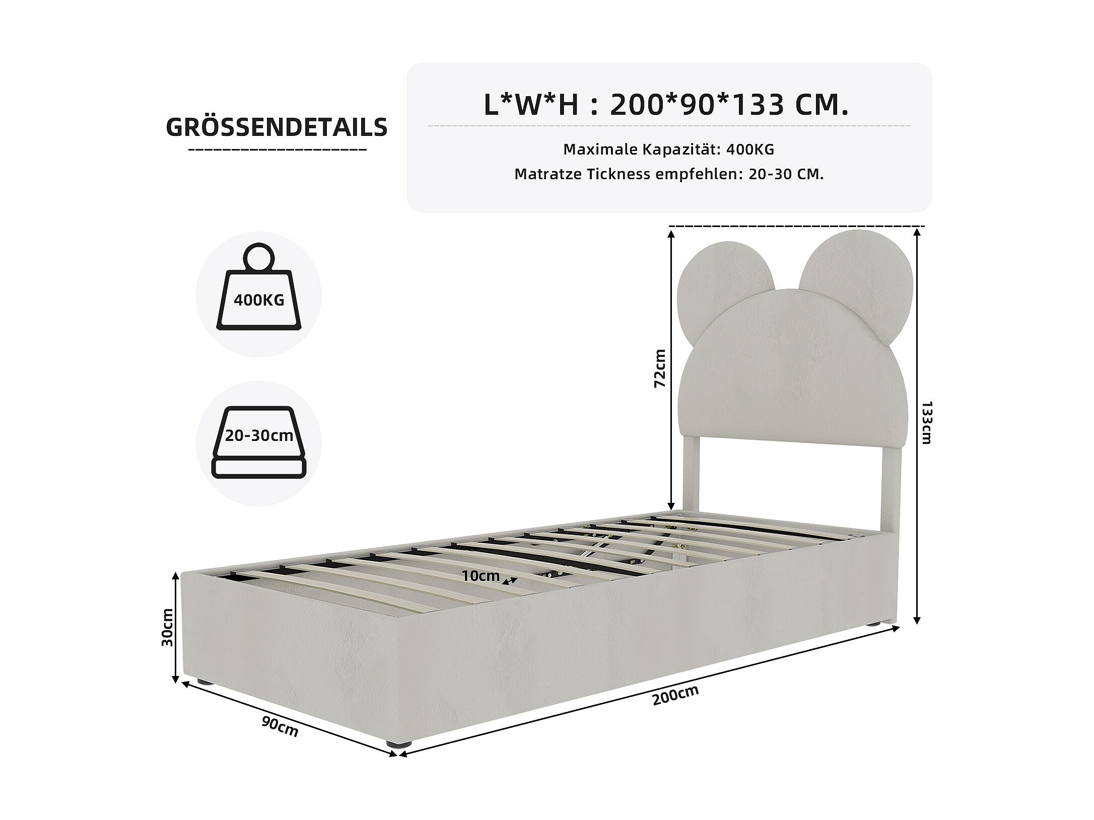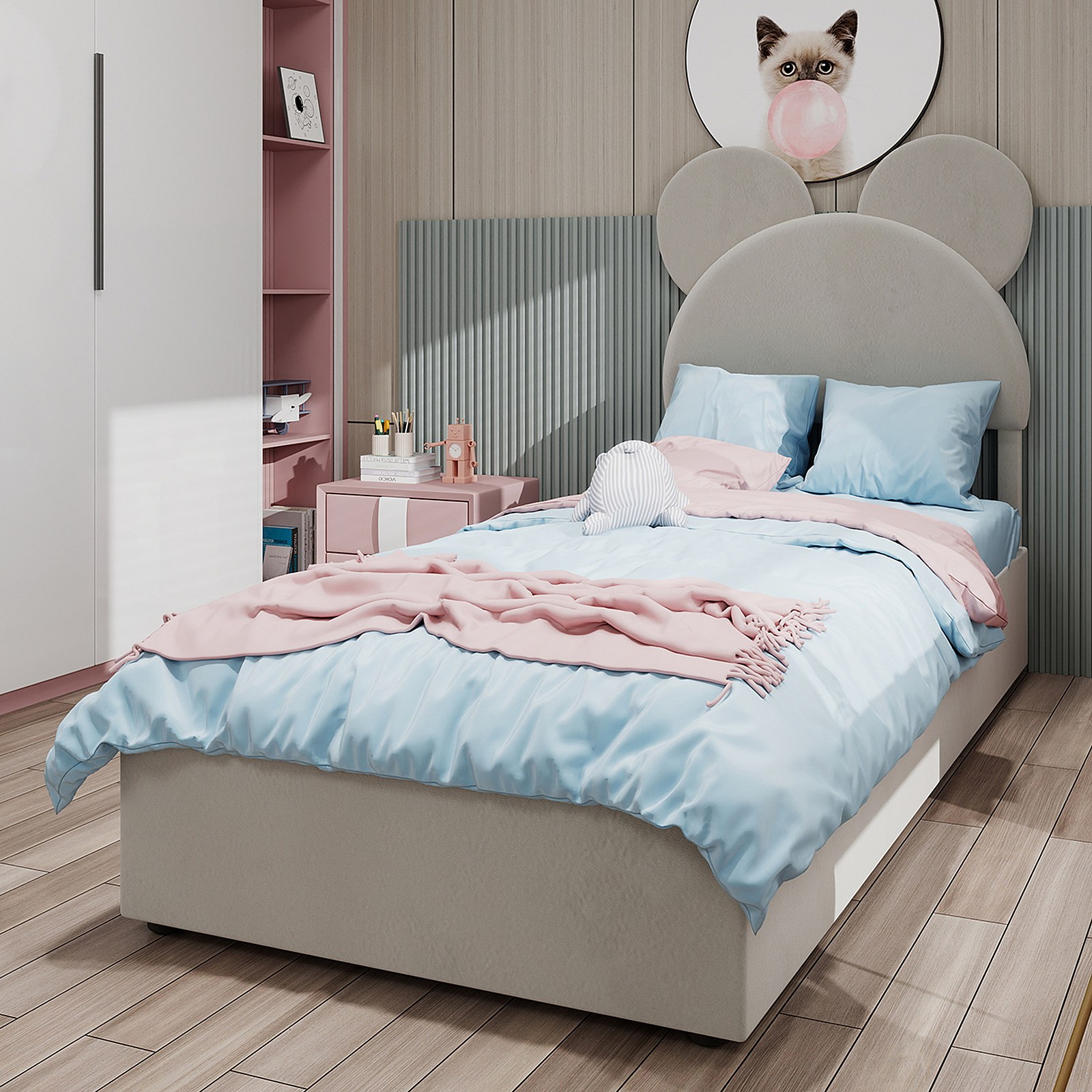 Letto contenitore 90 x 200 cm - Letto per bambini con testiera e base a fumetti - velluto beige - materasso non incluso