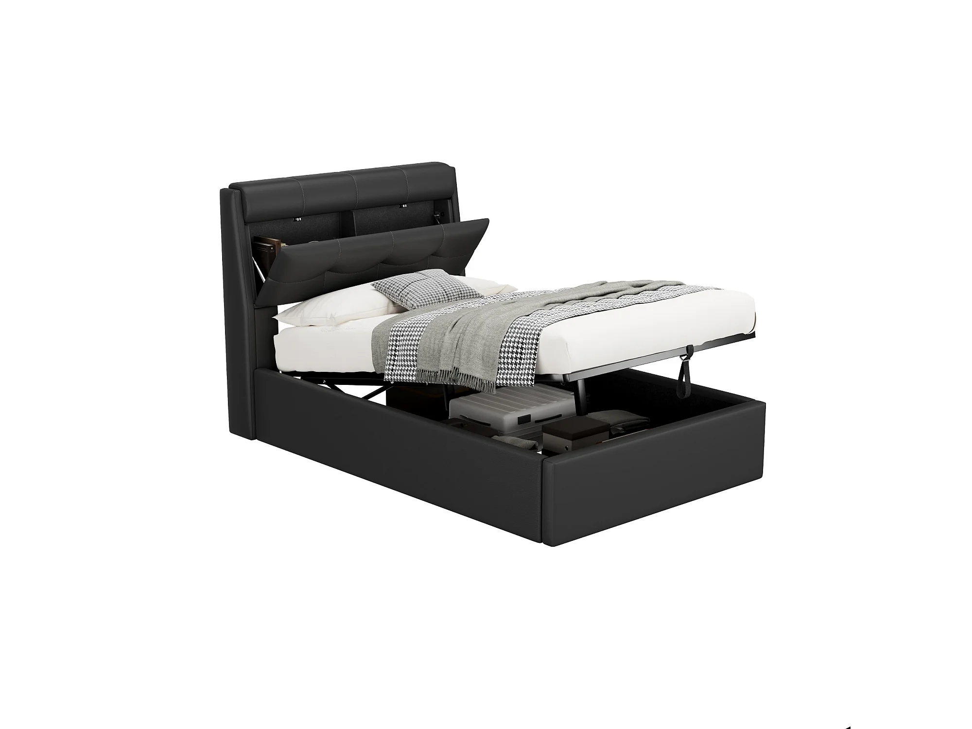 Letto contenitore 90x200 cm - in similpelle - testiera con contenitore - Nero