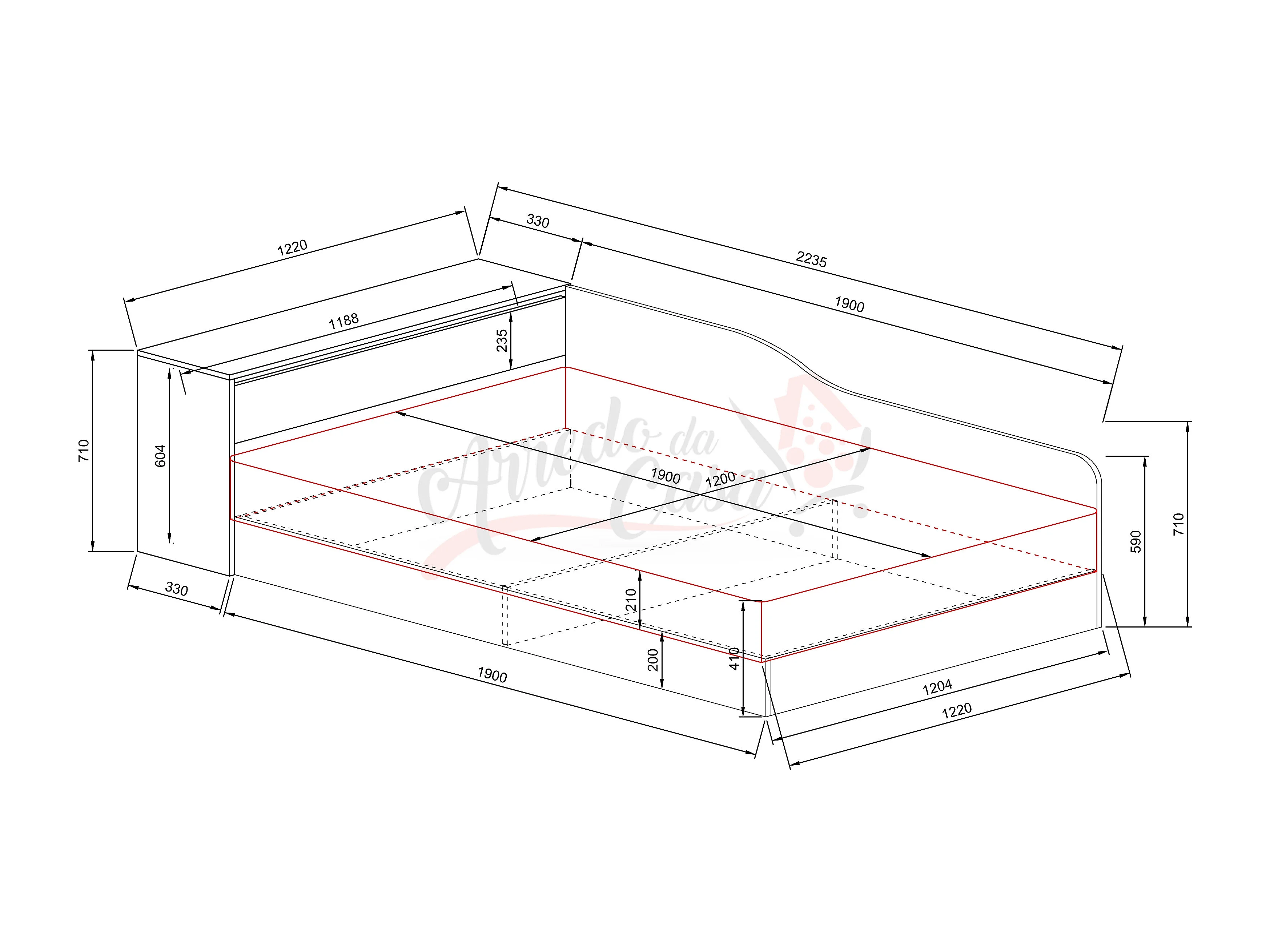 Letto contenitore ad angolo effetto legno 223,5x71 rovere LI2002