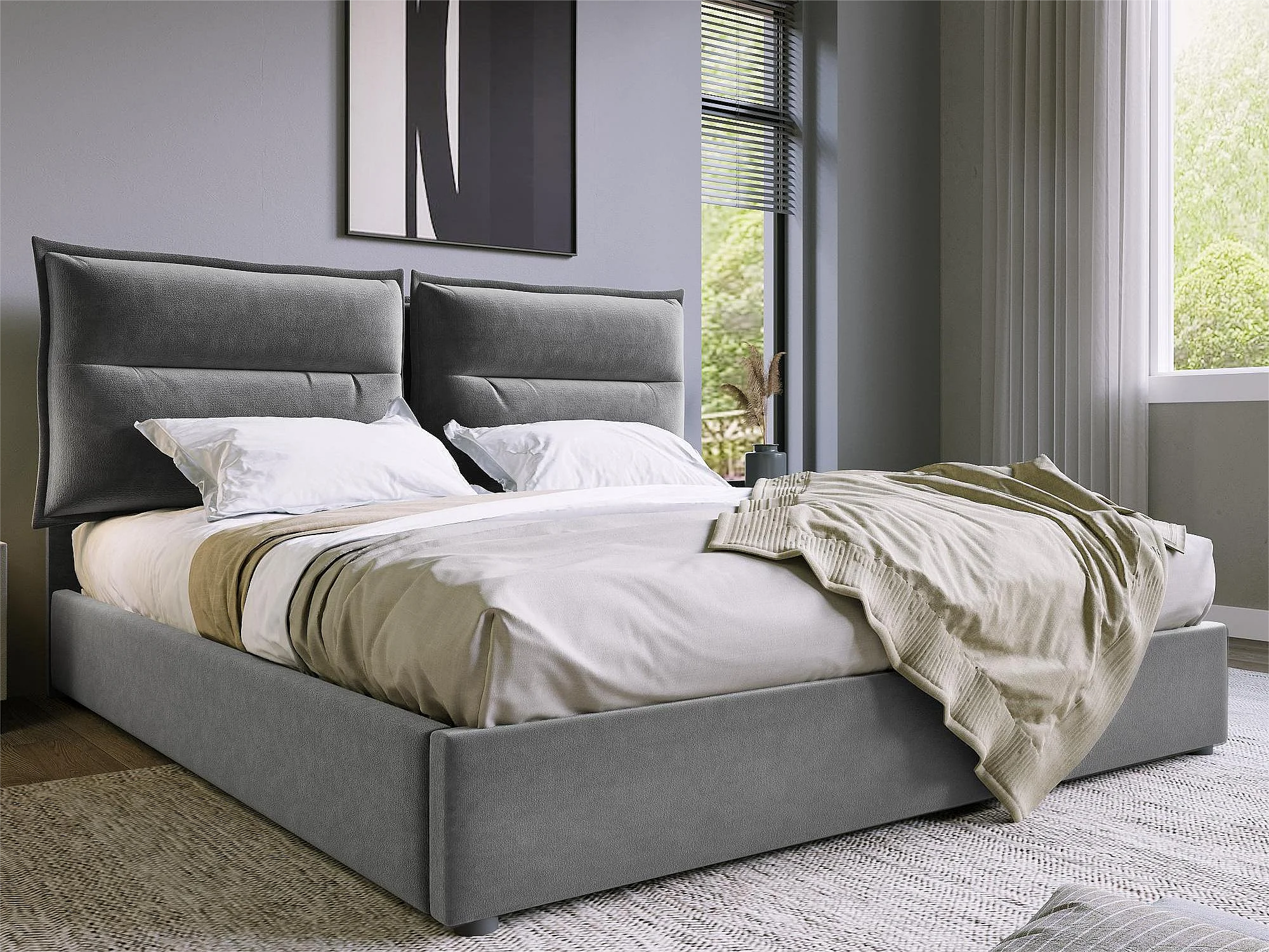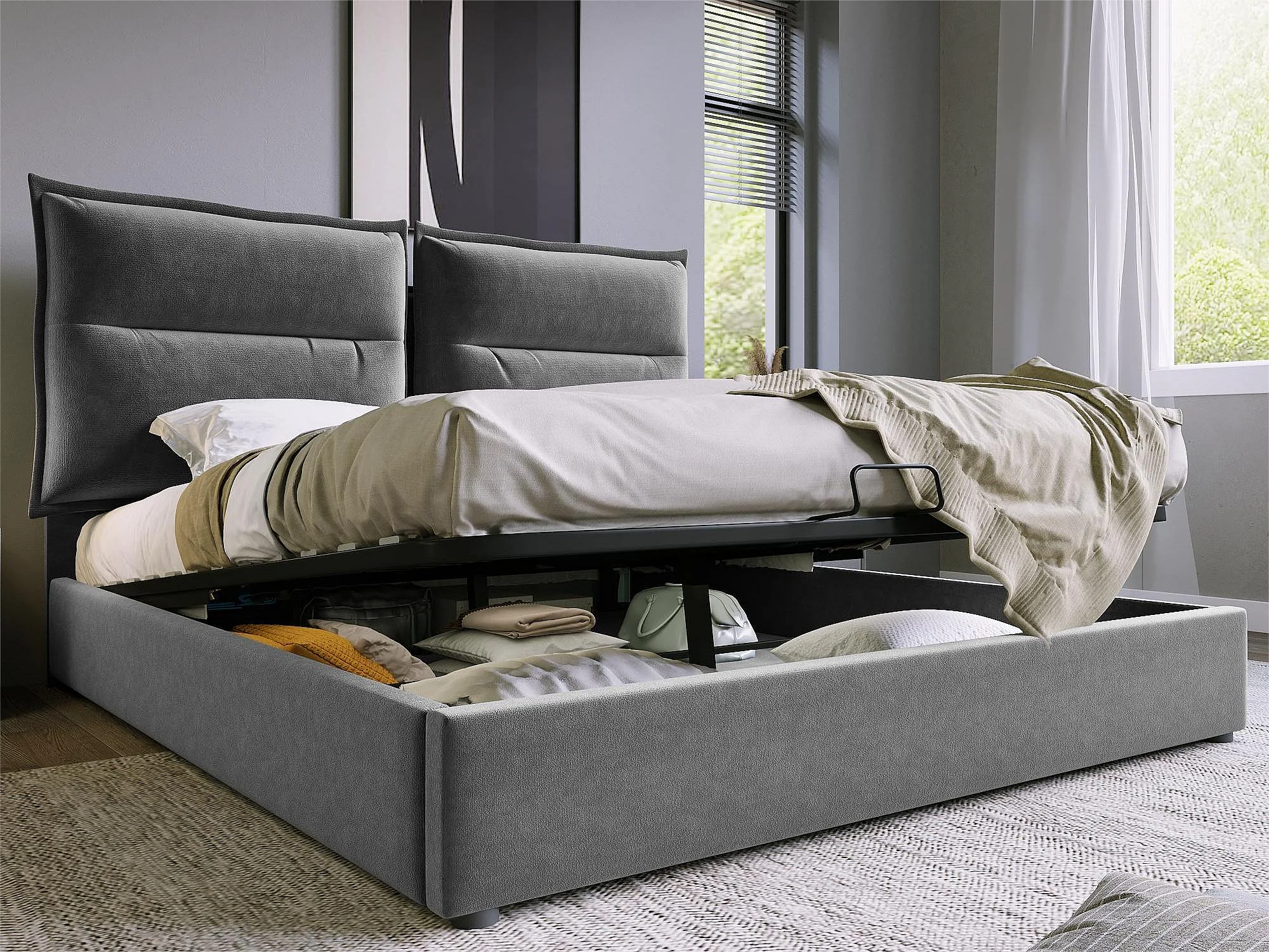 Letto contenitore con contenitore 140 x 200 cm - tessuto in velluto - rete a doghe - grigio