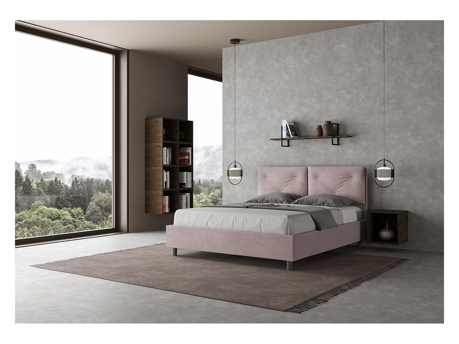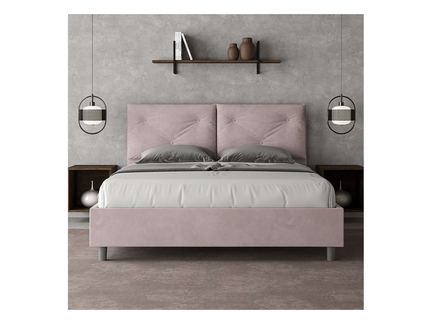 Letto contenitore doppia alzata imbottito 160x190 microfibra glicine Appia