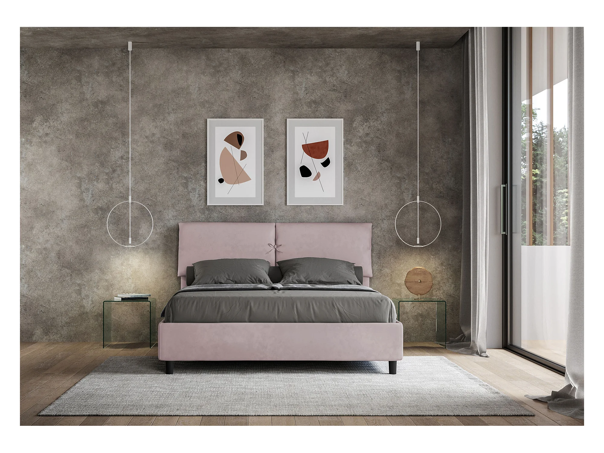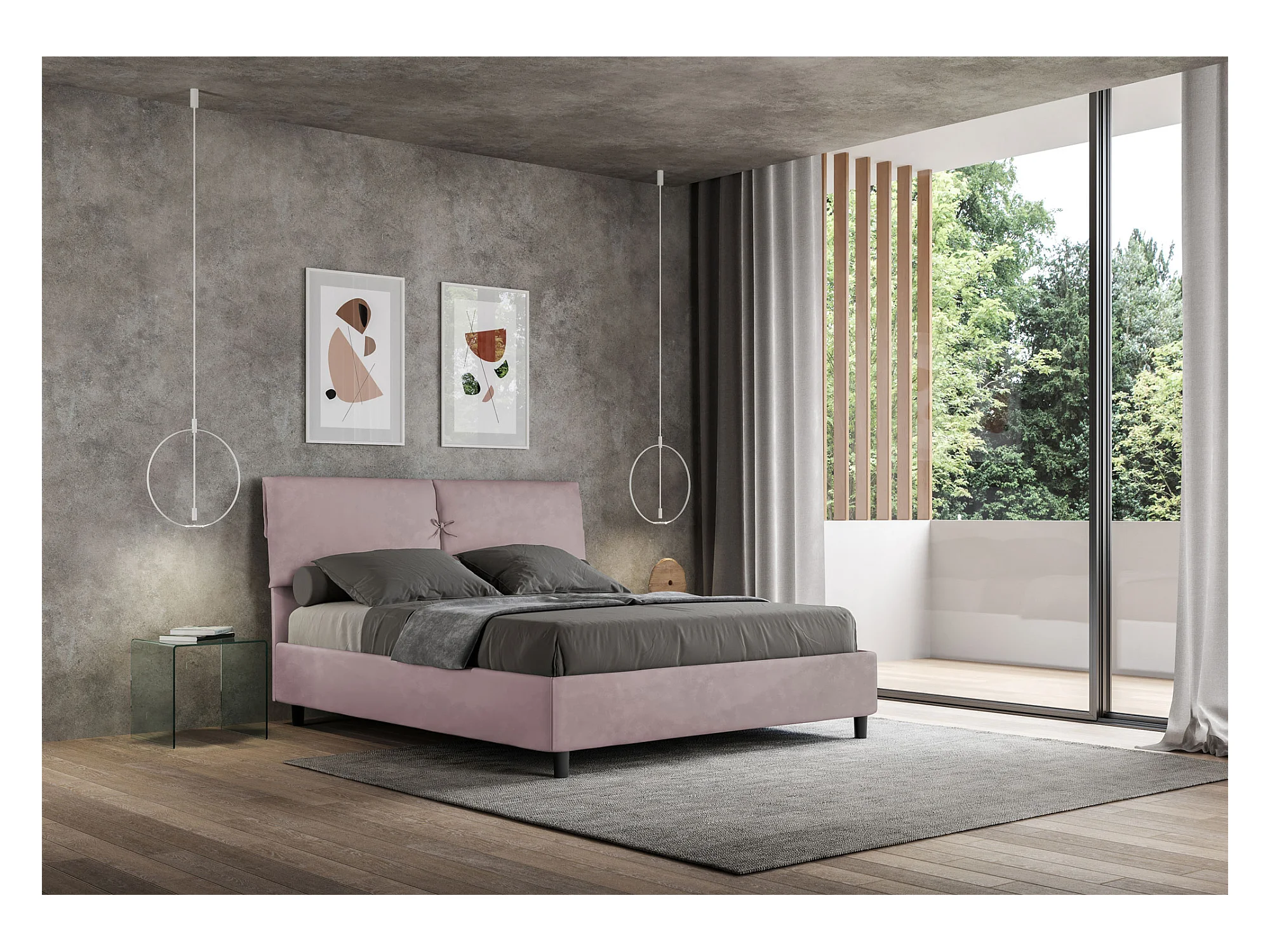 Letto contenitore doppia alzata imbottito 160x190 microfibra glicine Mados