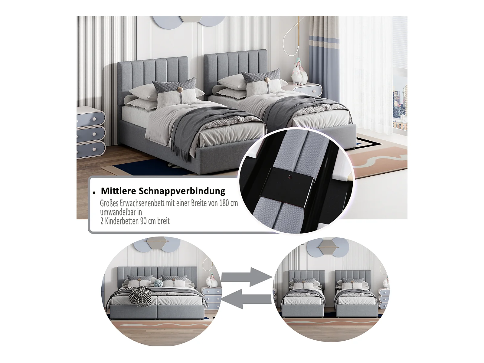Letto contenitore idraulico multifunzionale, lino, grigio, struttura flottante imbottita (203x180x105cm)