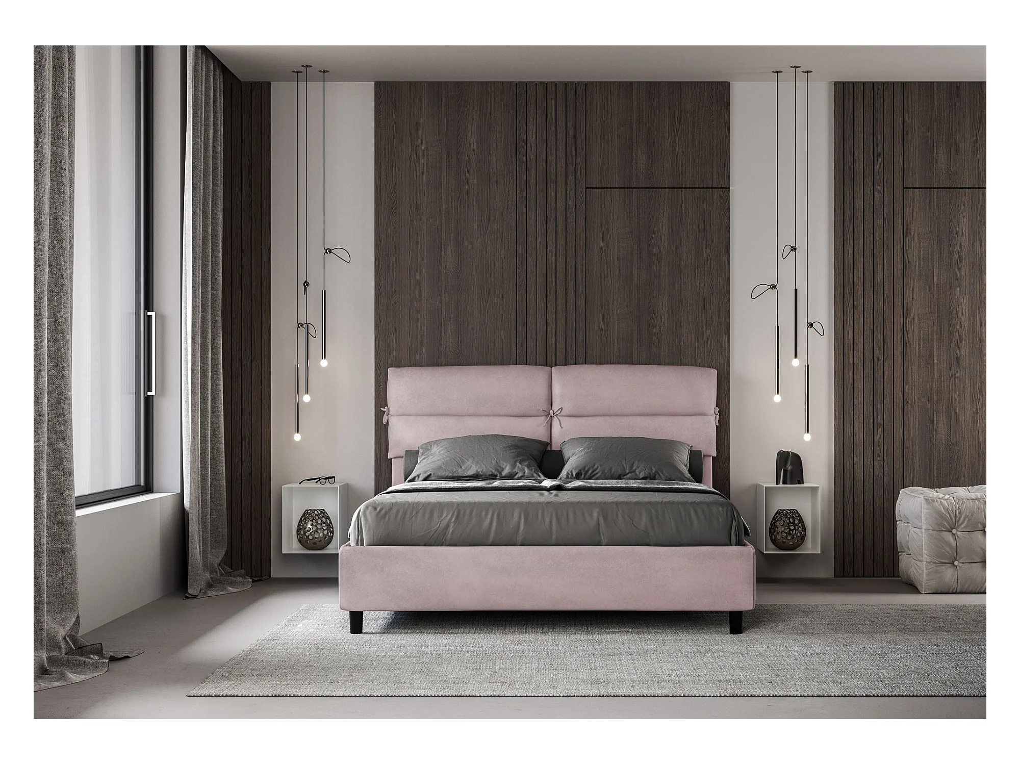 Letto contenitore imbottito 160x190 microfibra glicine Nandy