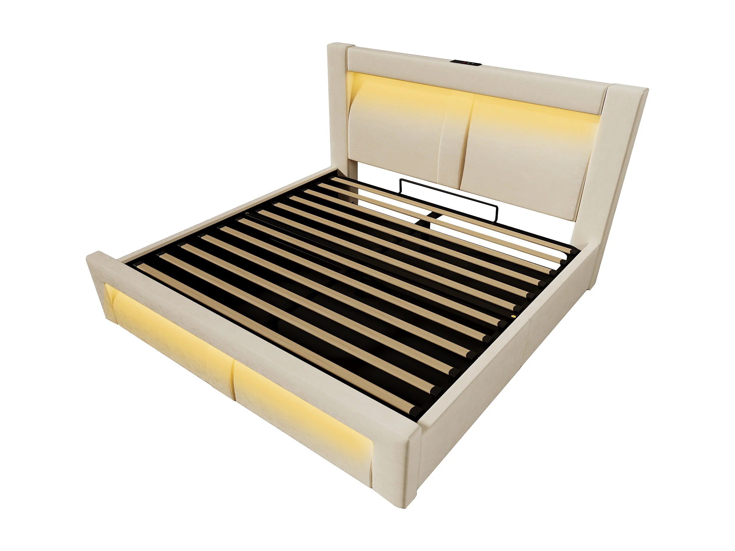 Letto contenitore matrimoniale 160x200 cm con LED e USB - Letto per adulti in velluto beige