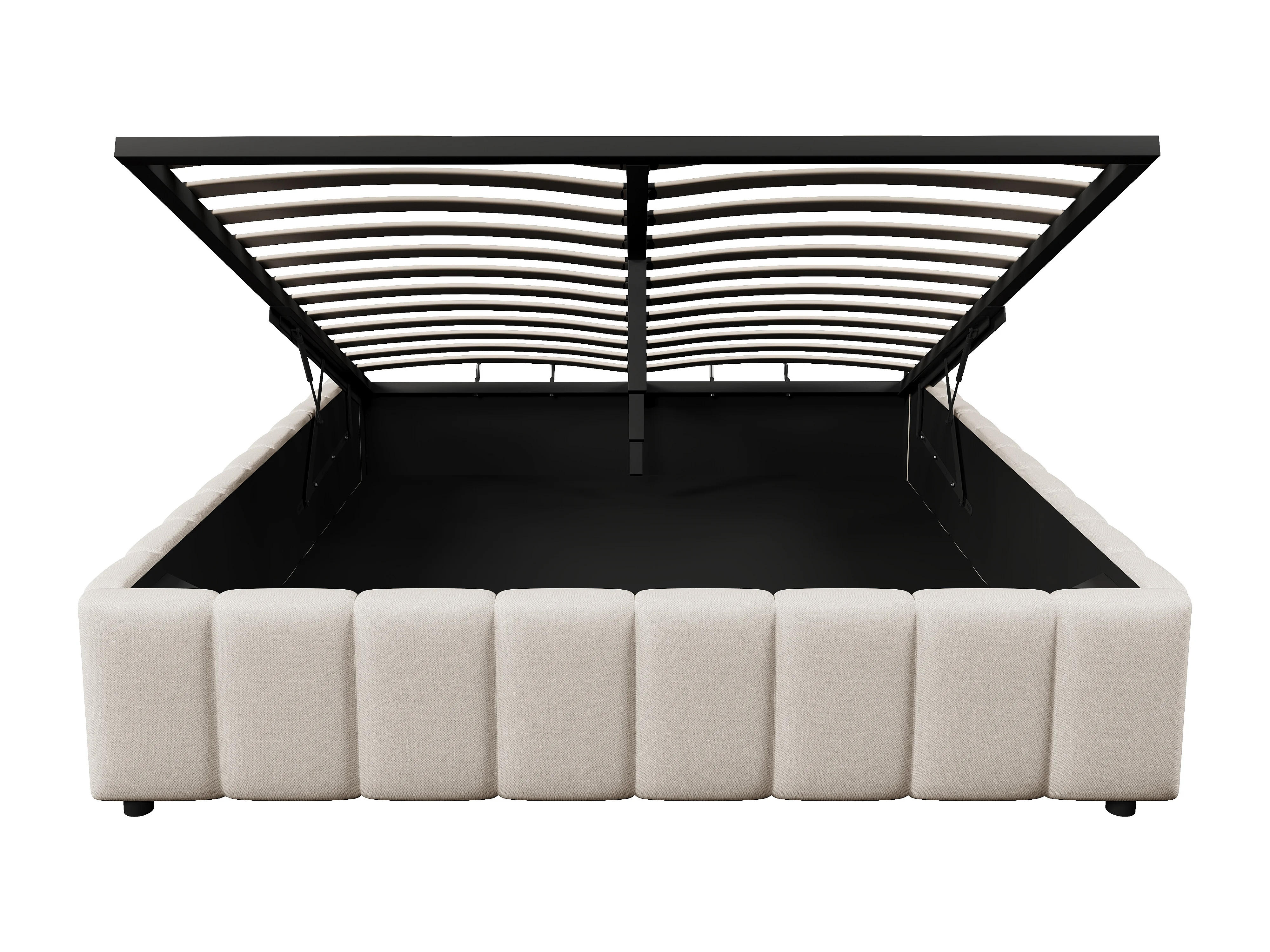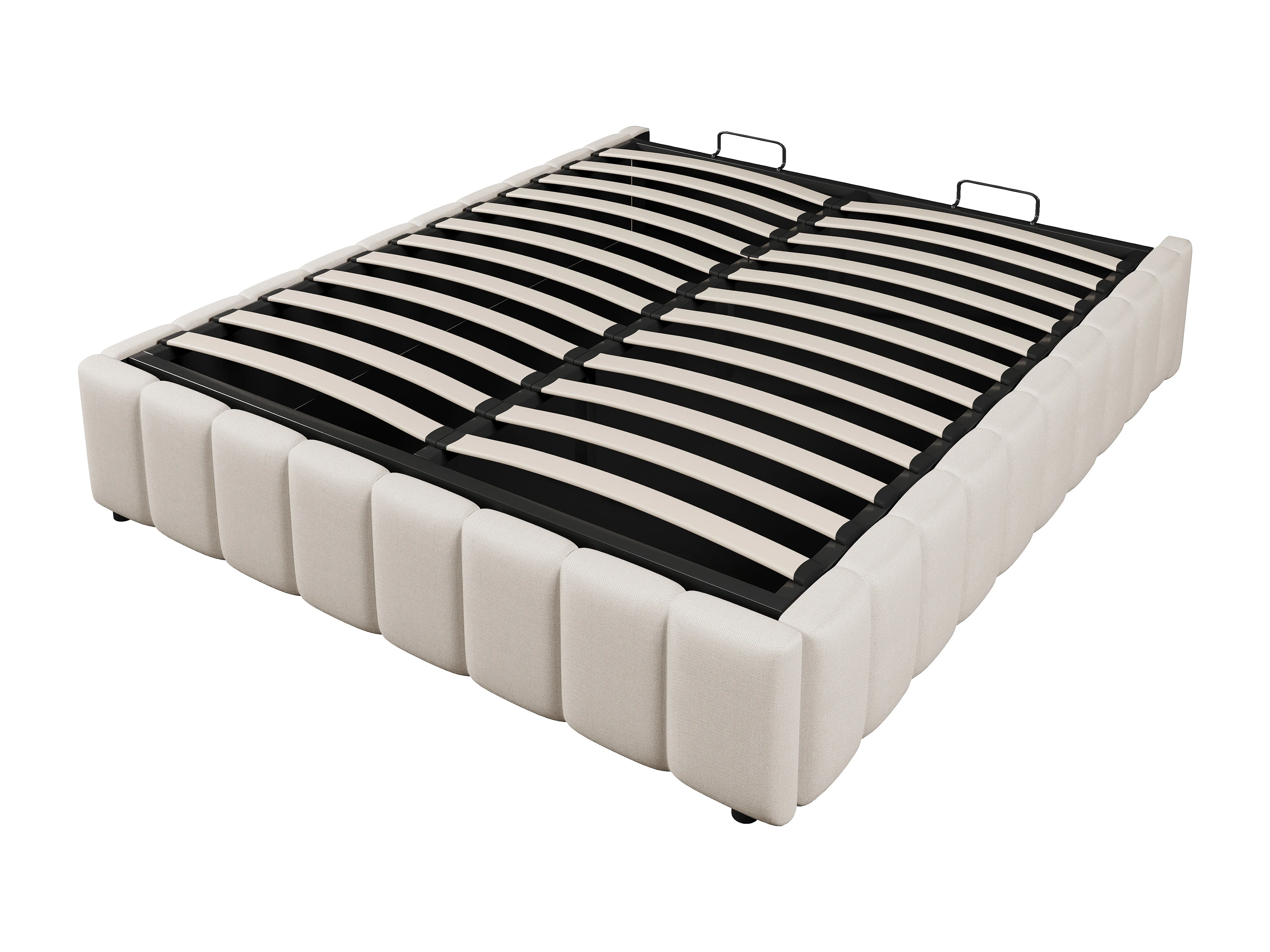 Letto contenitore minimalista 140x200cm in lino beige senza testiera con contenitore idraulico (senza materasso)