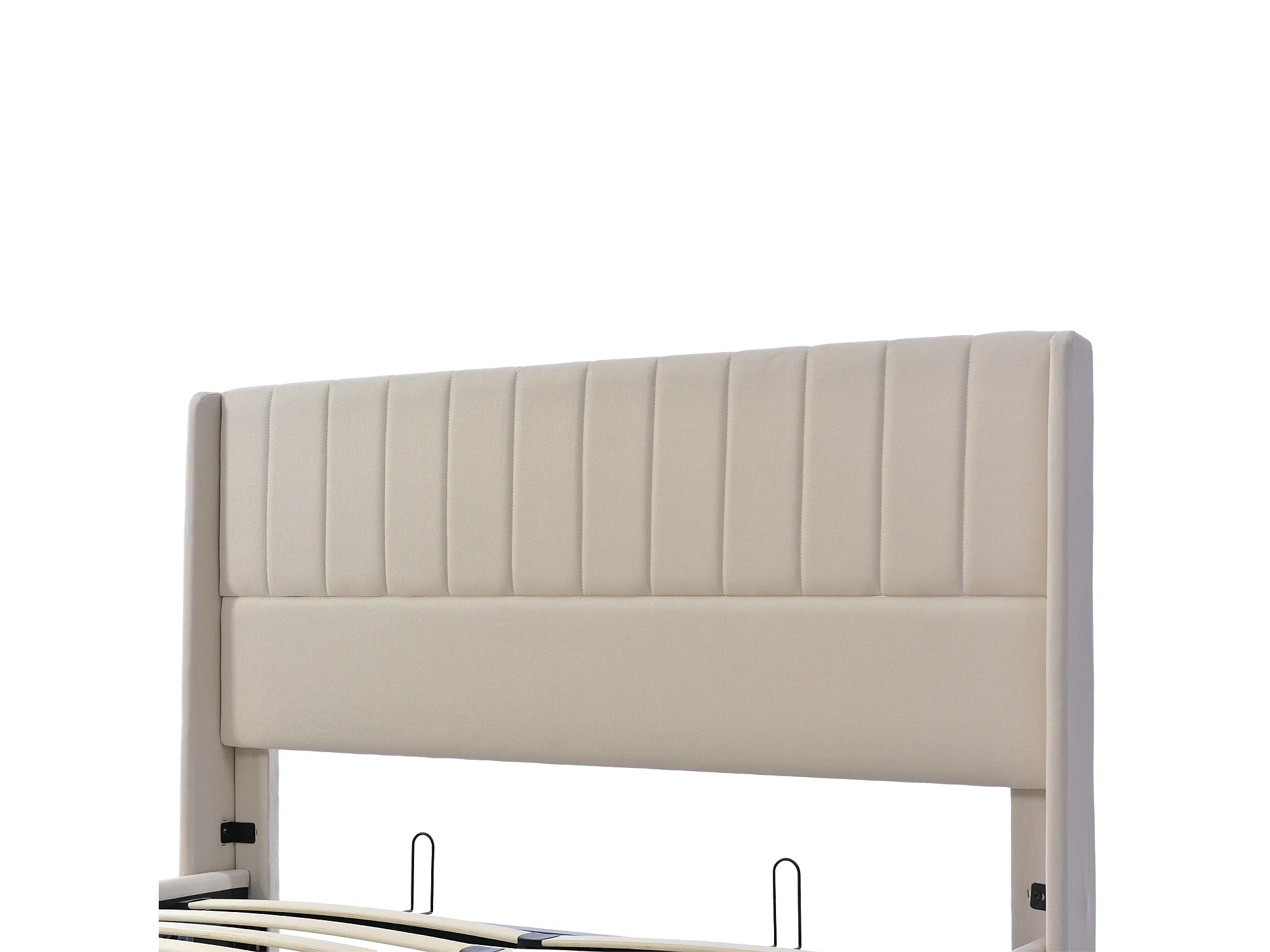 Letto contenitore per adulti 140x200 cm con base - testiera imbottita - struttura letto in metallo - lino beige (senza materasso)