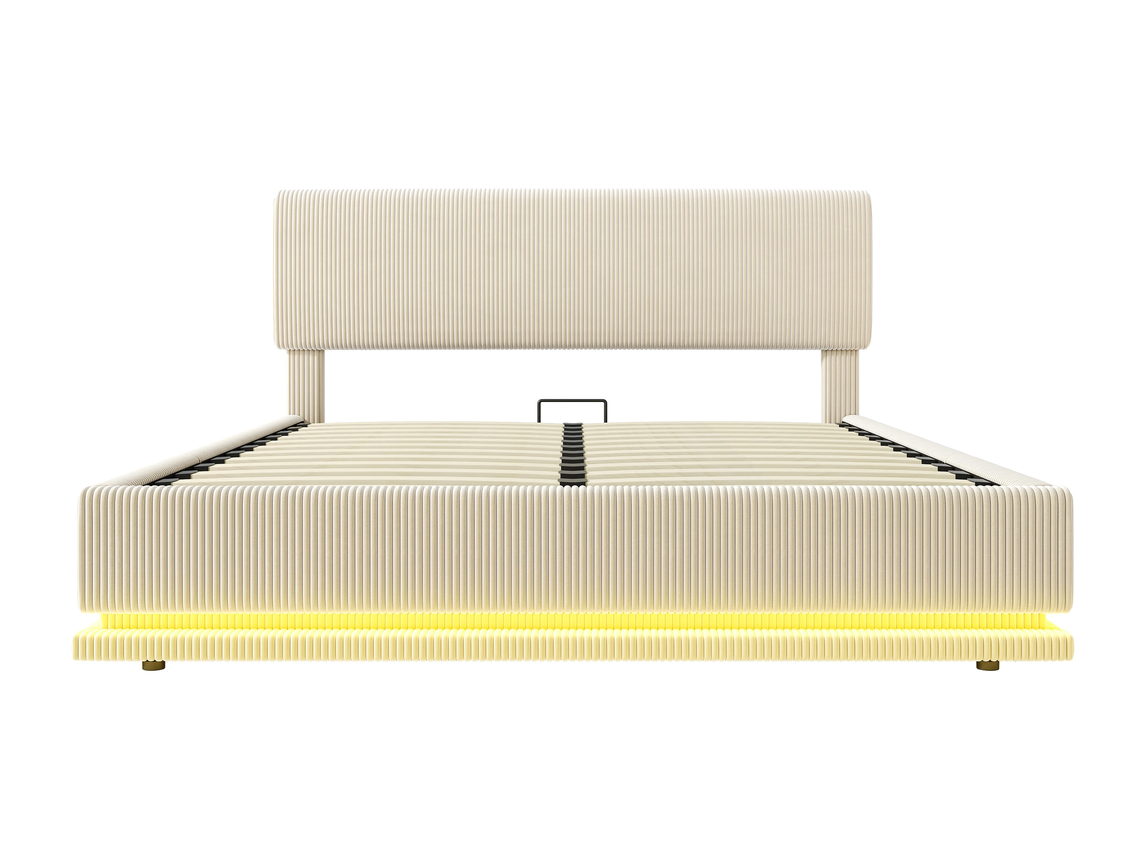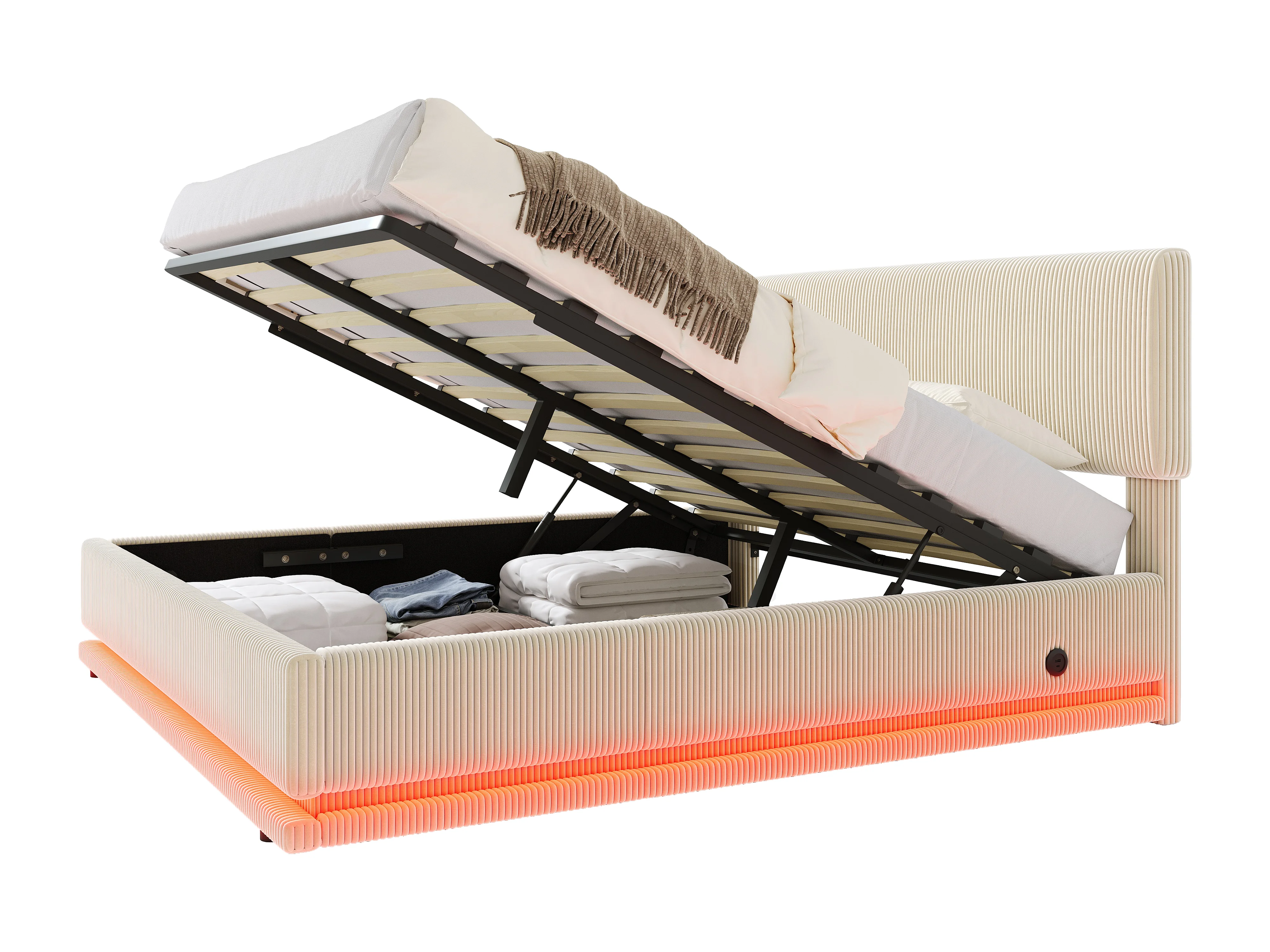 Letto contenitore per adulti 140x200 cm con testiera regolabile, illuminazione LED e porte USB - Velluto a coste beige
