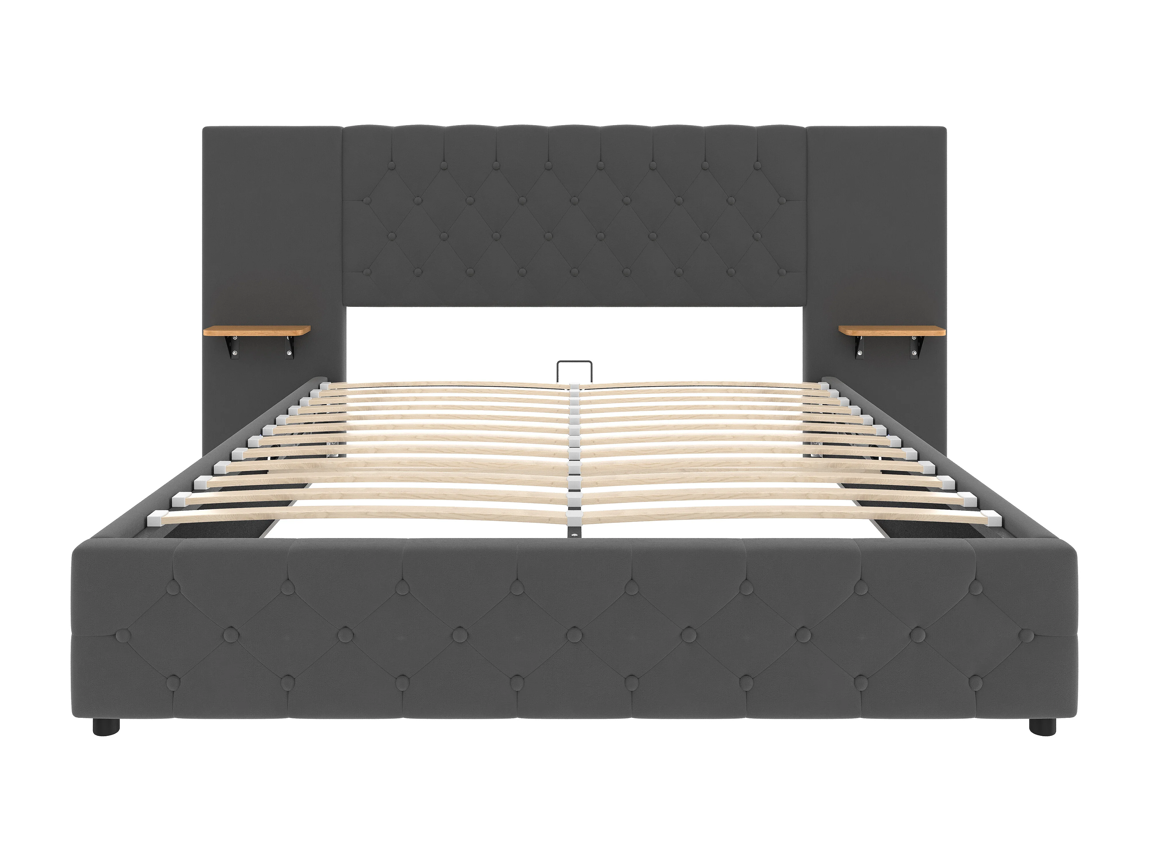 Letto contenitore per adulti 160x200 cm con ampia testiera, illuminazione a LED e porta USB - Letto matrimoniale in velluto grigio