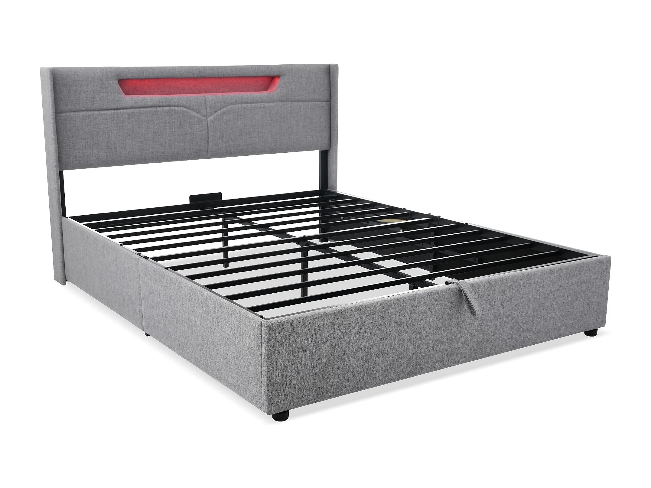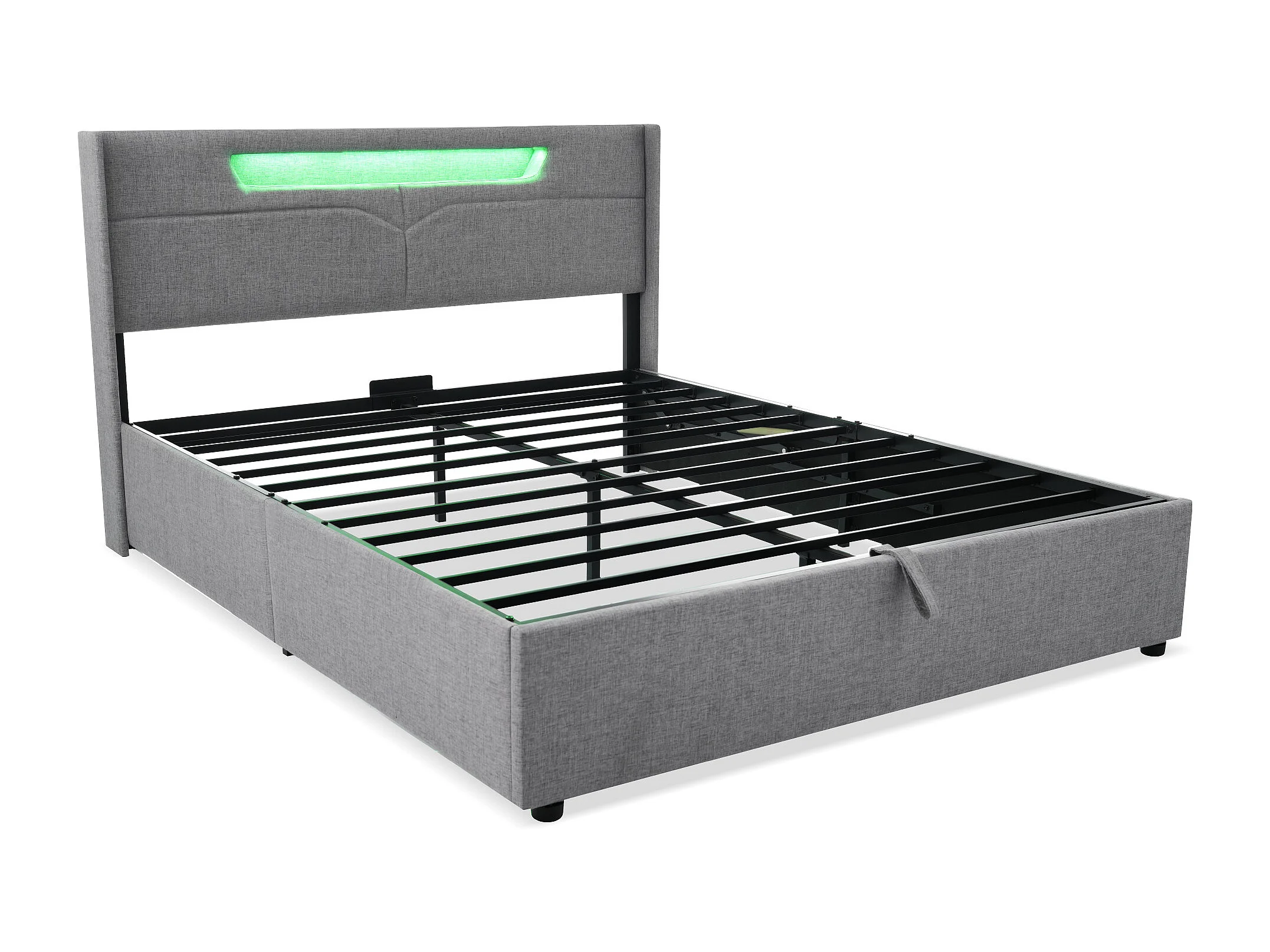 Letto contenitore per adulti 160x200 cm - testiera con USB e LED - struttura in metallo - lino grigio (senza materasso)
