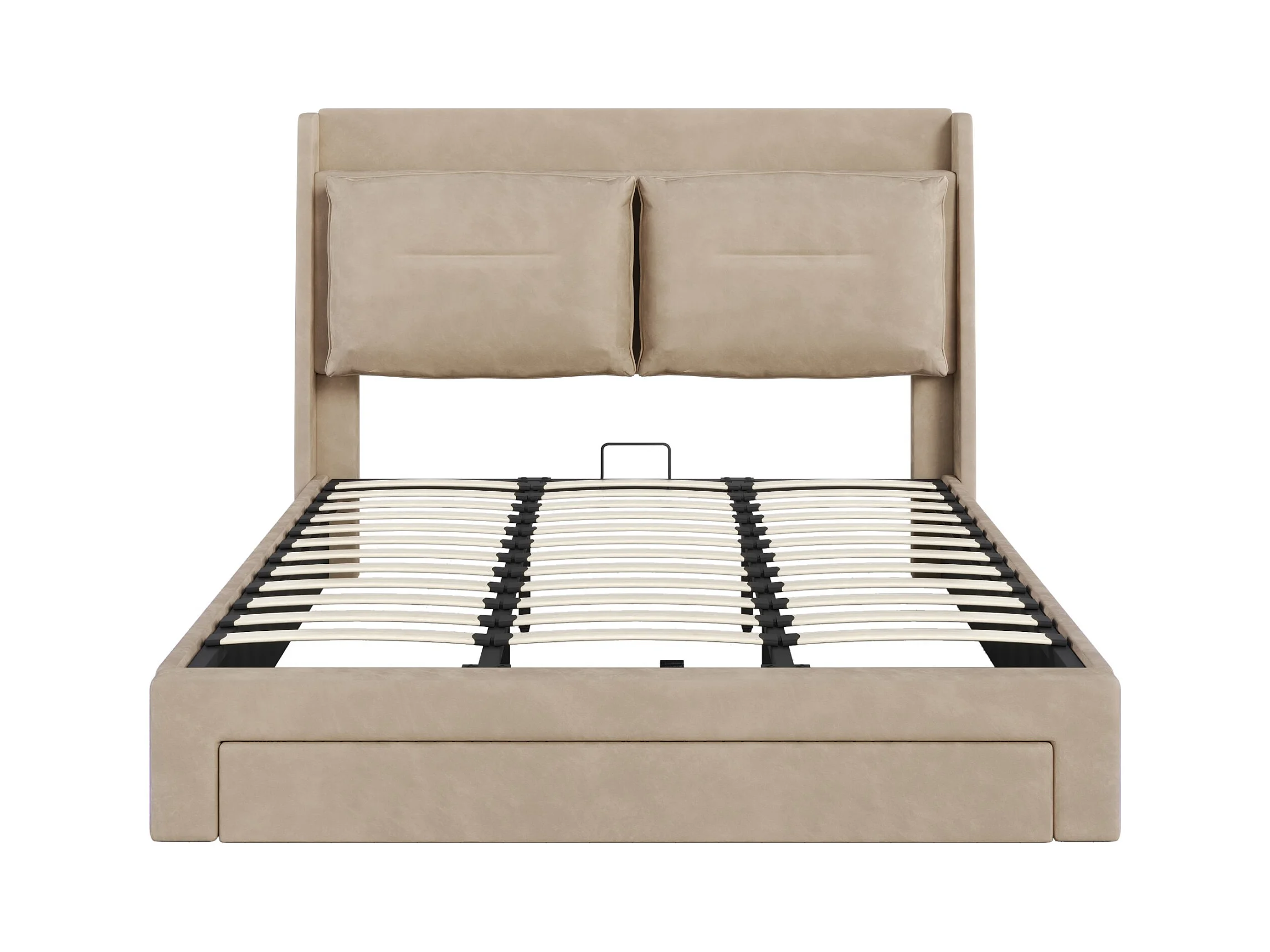 Letto contenitore per adulti 180x200 cm con base - testiera imbottita con cassetti 2 in 1 e LED - velluto beige (senza materasso)