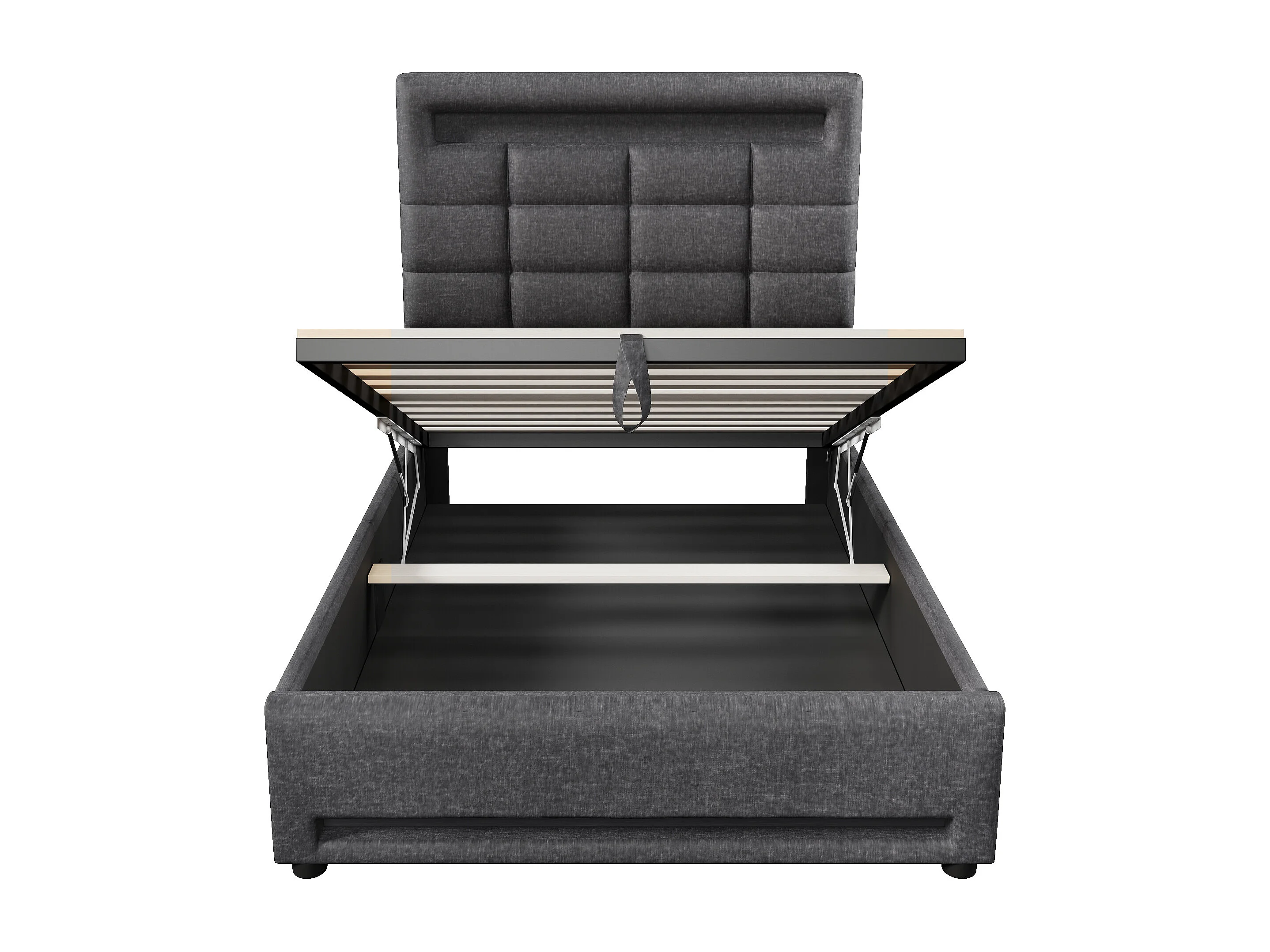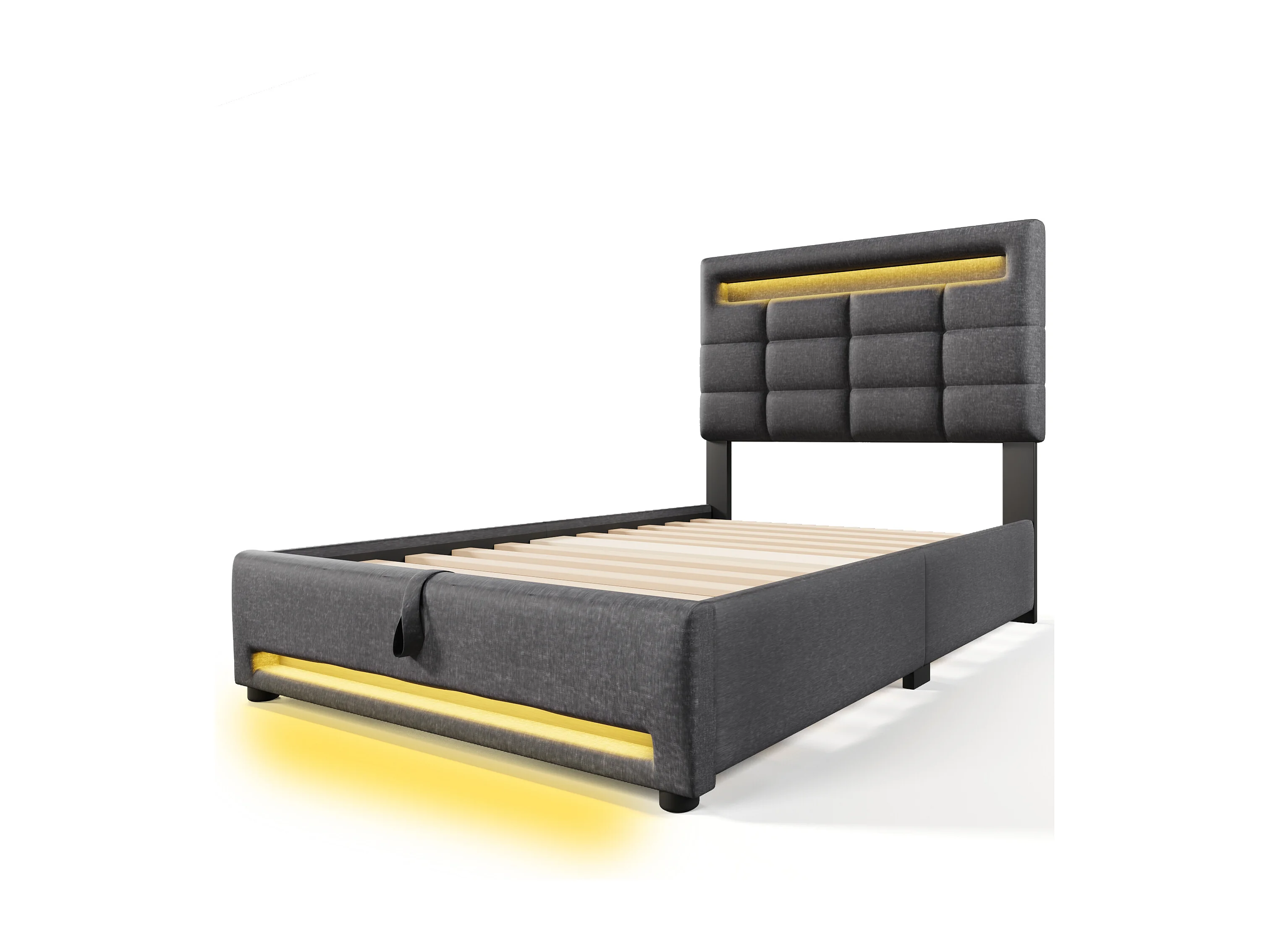 Letto contenitore per adulti 90x200 cm con illuminazione LED e porta USB, lino grigio - senza materasso